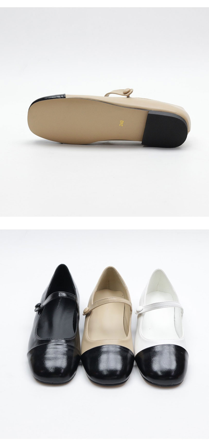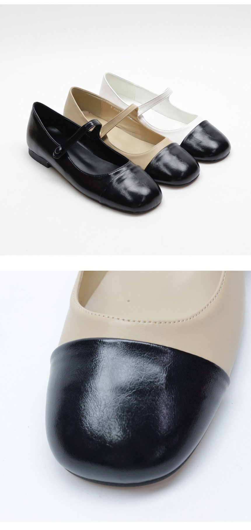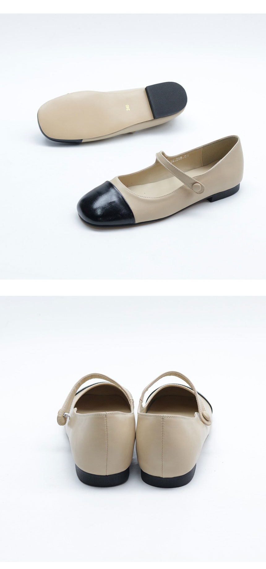 배색 스퀘어 토우 메리제인 플랫 단화 구두
