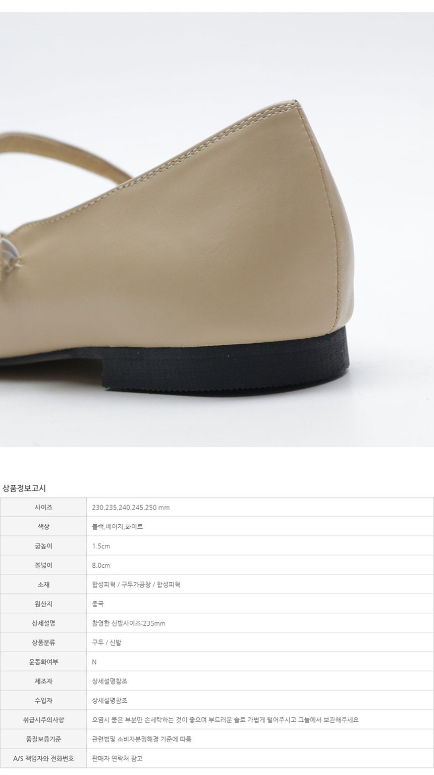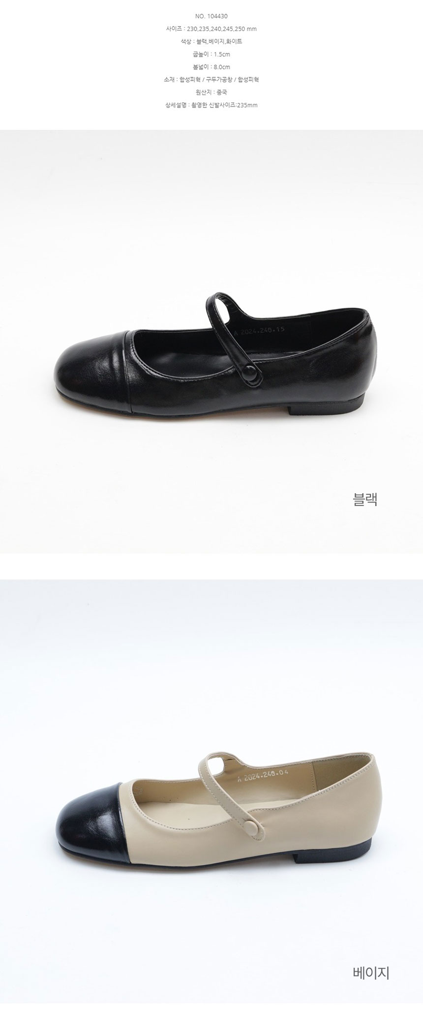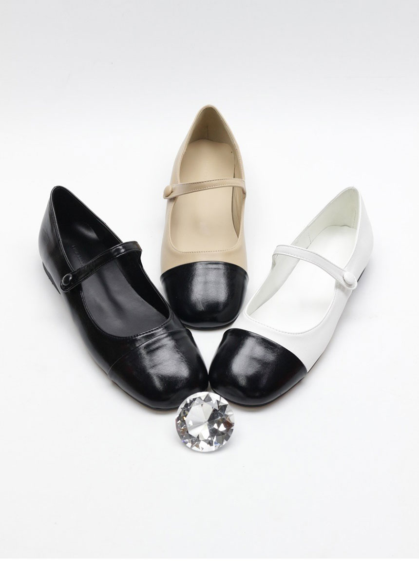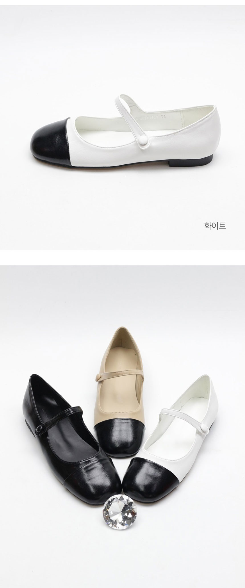 배색 스퀘어 토우 메리제인 플랫 단화 구두