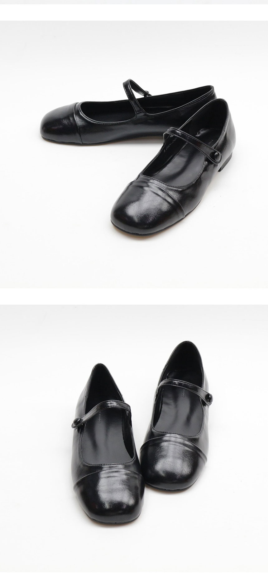 • 배색 스퀘어 토우 메리제인 플랫 단화 구두