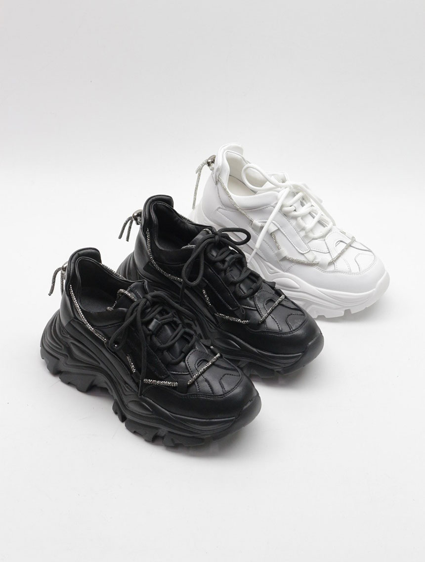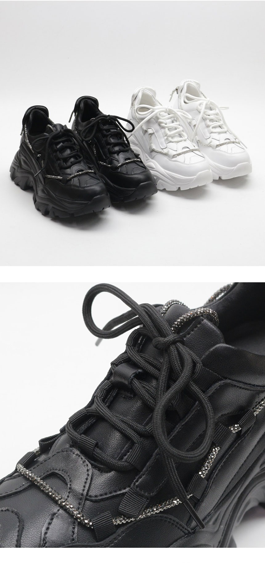 • 가죽 블링 스트링 키높이 운동화 스니커즈