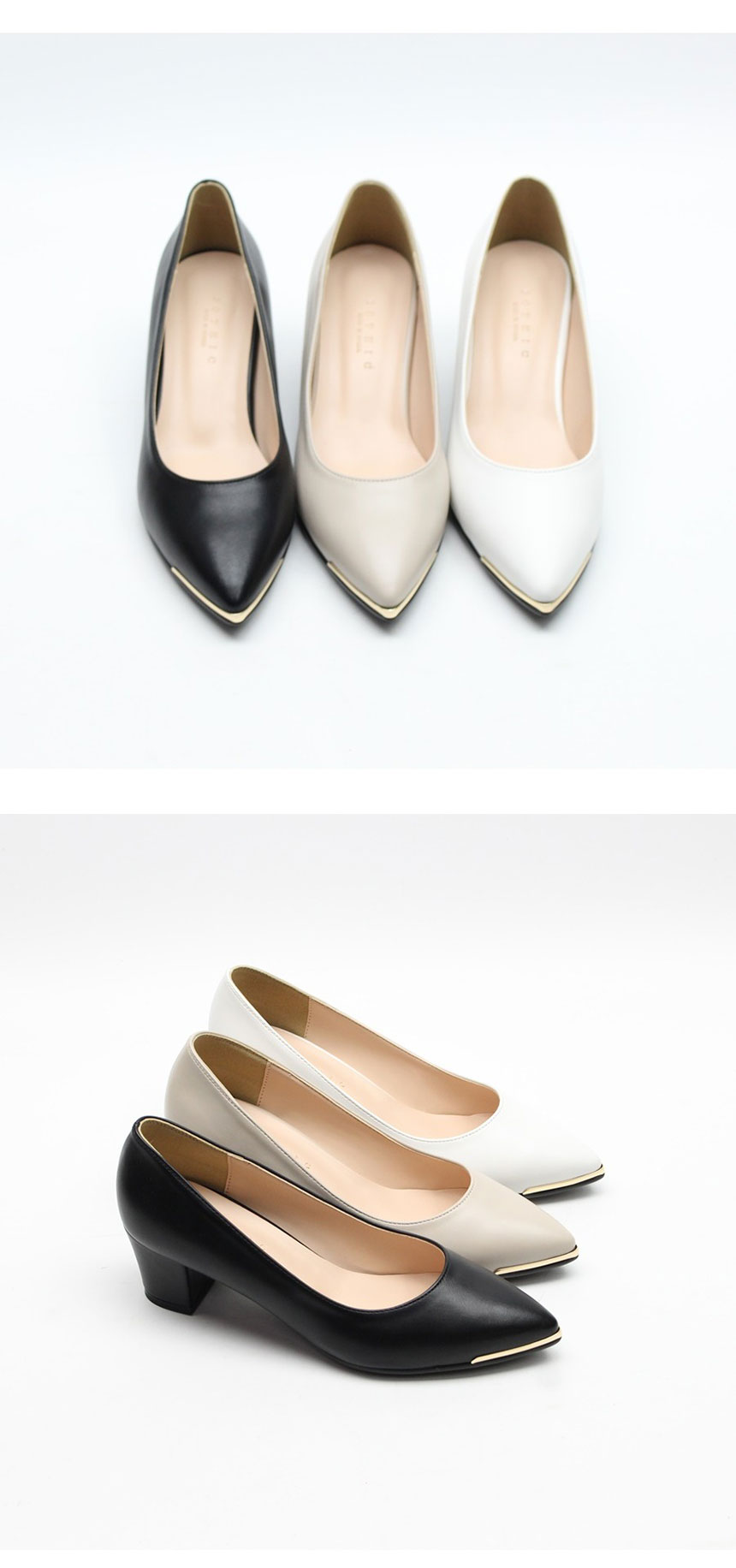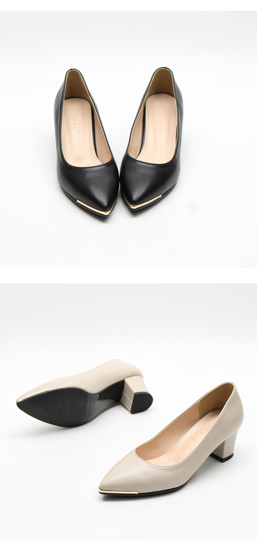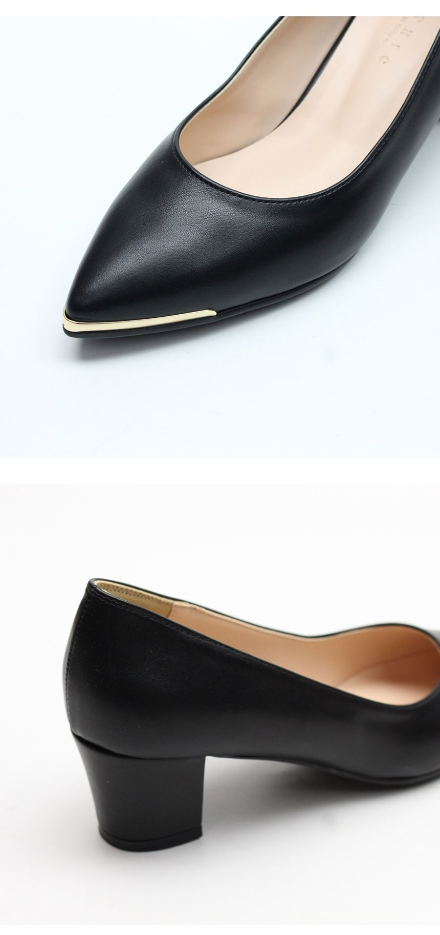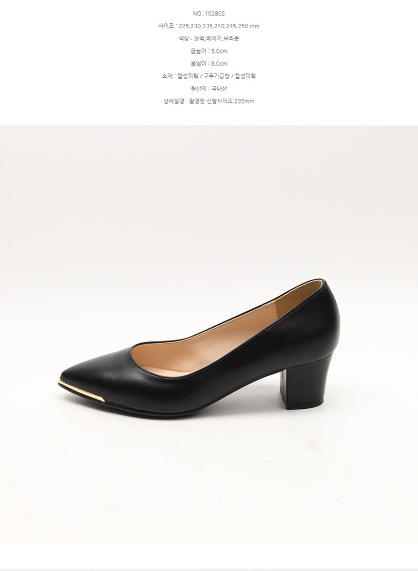 • 골드팁 뾰족코 펌프스 청키힐 정장 구두