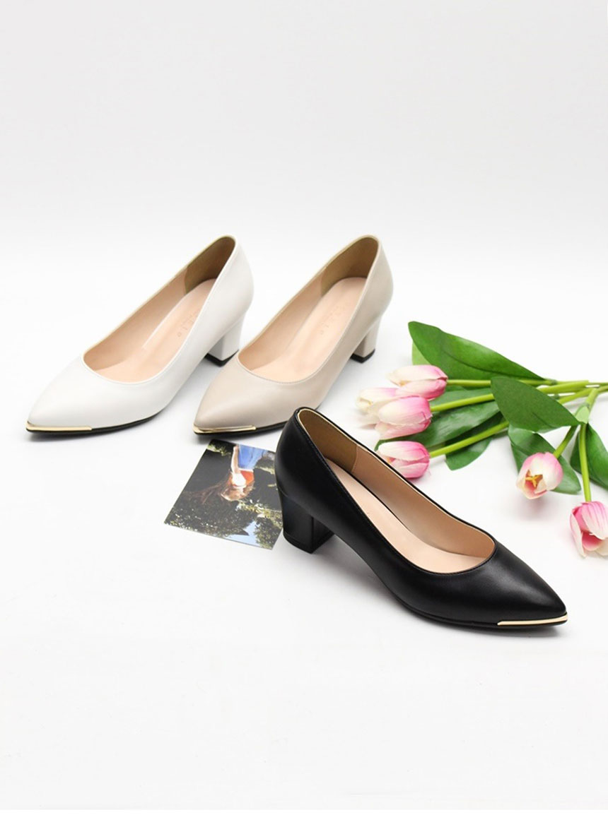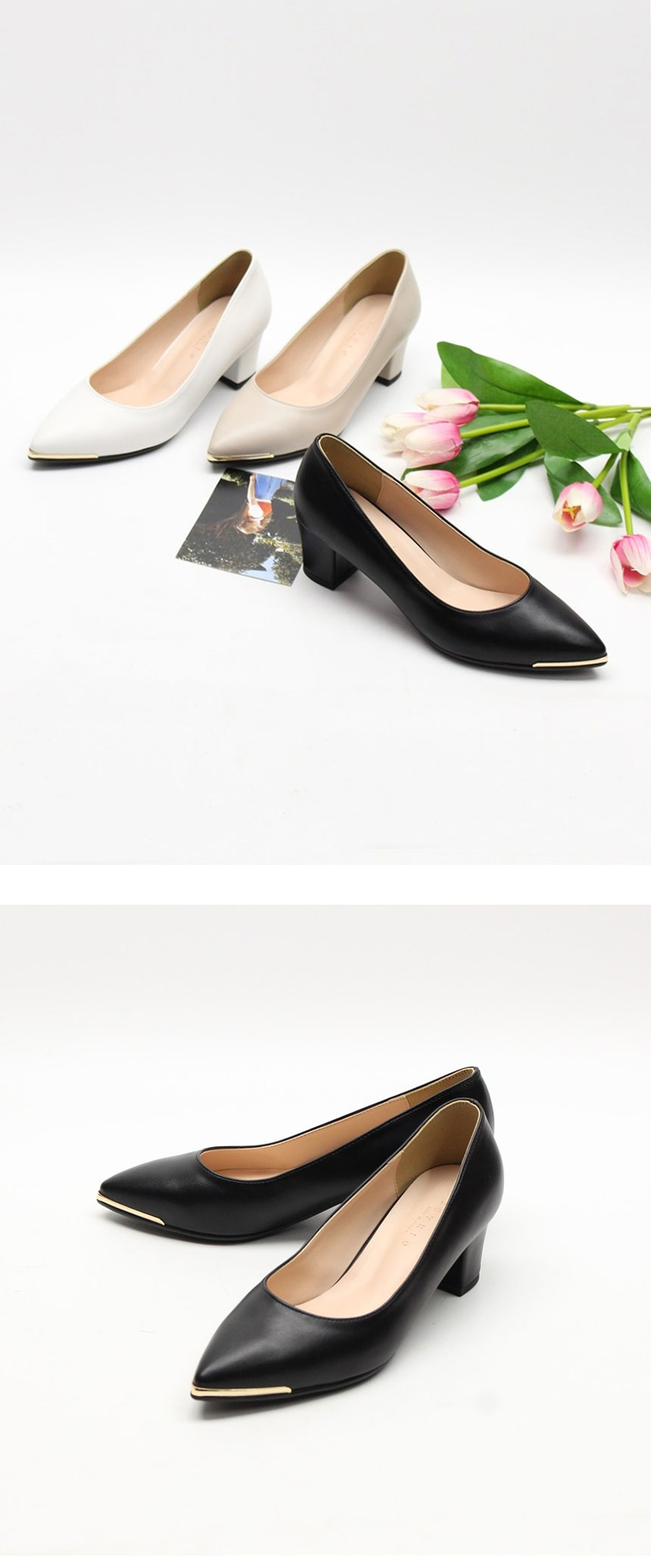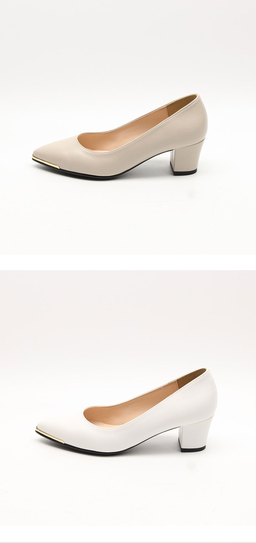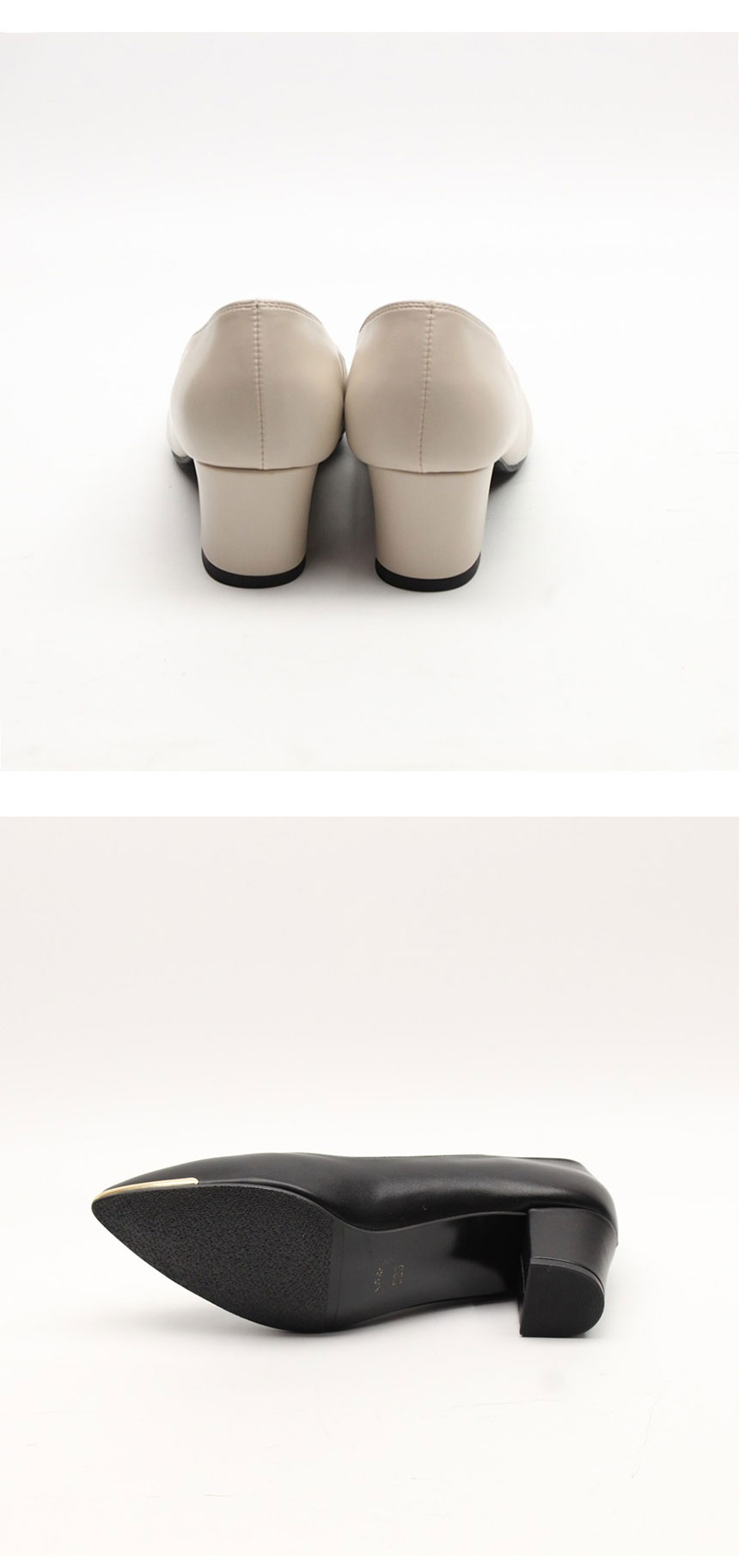 • 골드팁 뾰족코 펌프스 청키힐 정장 구두