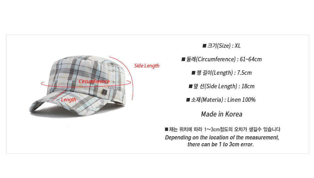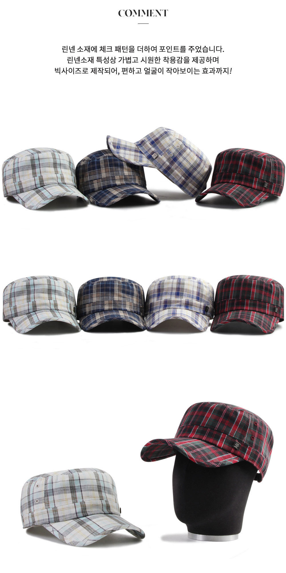 • 빅사이즈 린넨 체크패턴 군모 캐주얼모자