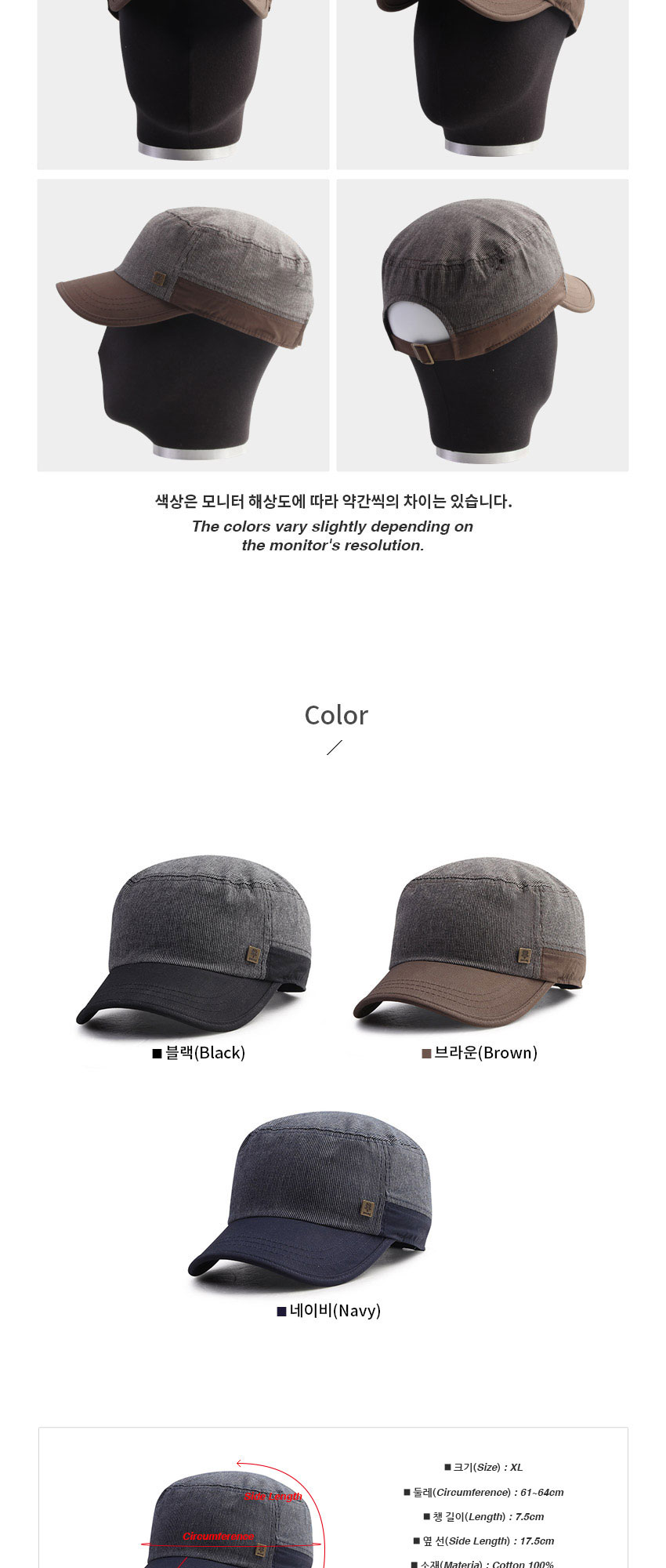 • 빅사이즈 투톤 데일리 군모 남자큰모자