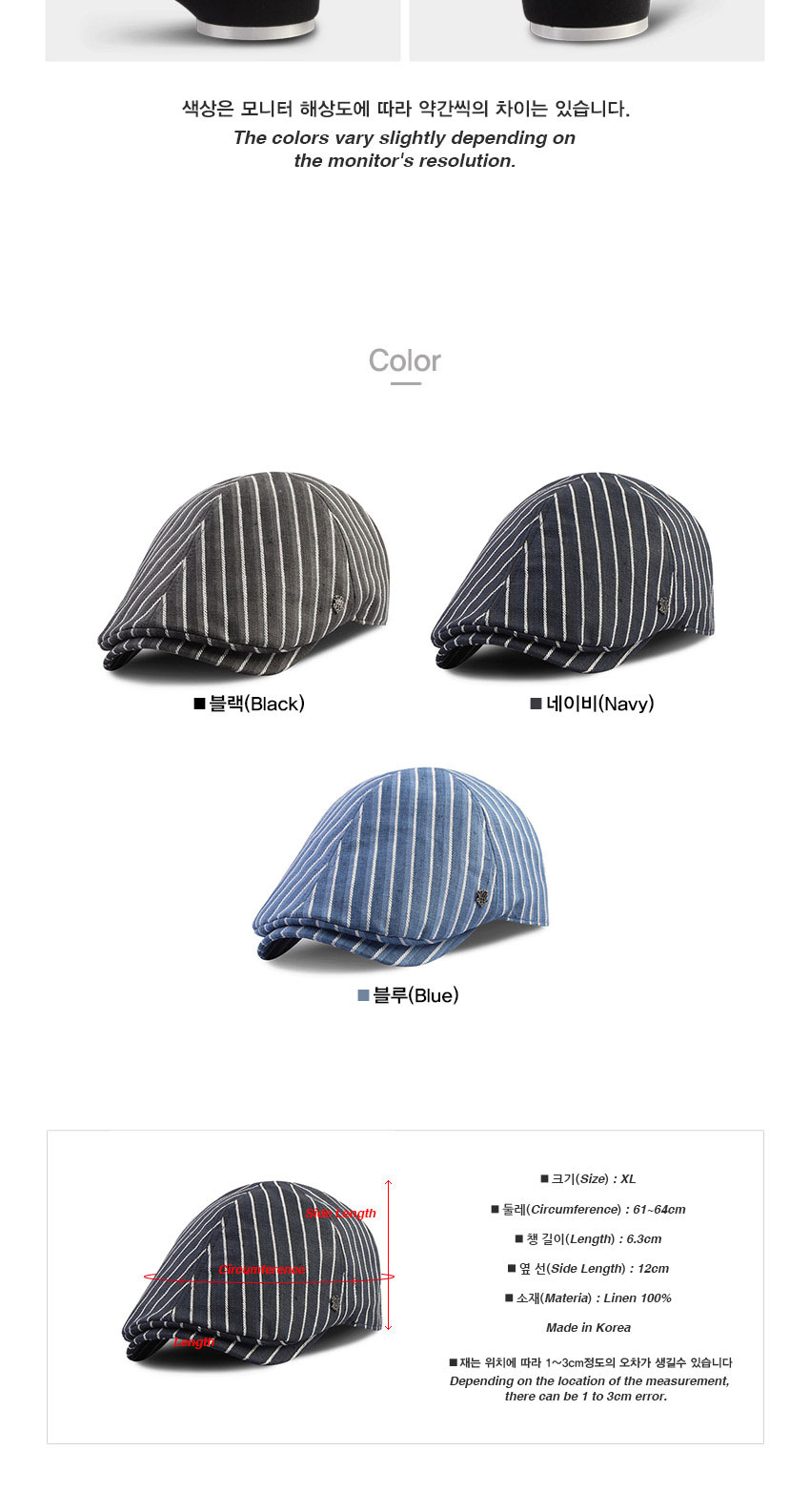빅사이즈 스트라이프 헌팅캡 플랫캡모자