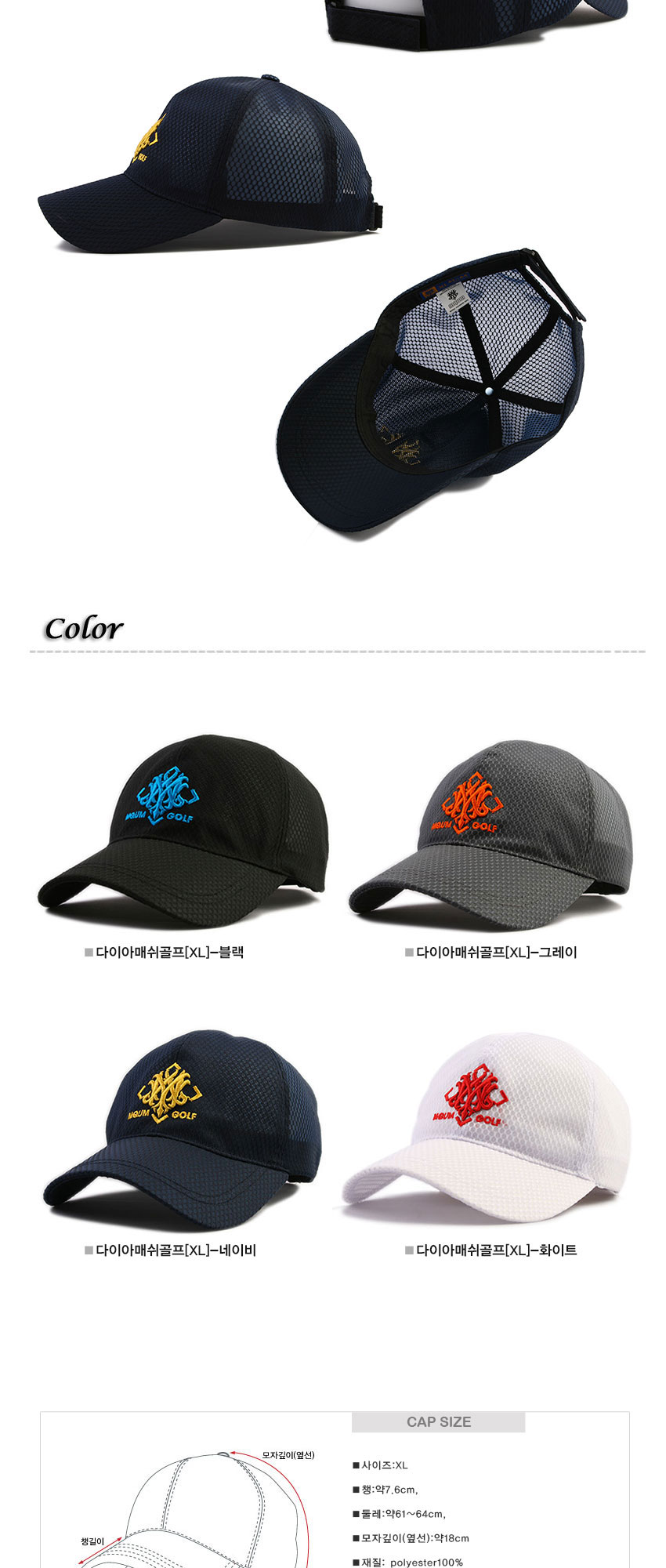 빅사이즈 비비드자수 여름캡모자 메쉬캡