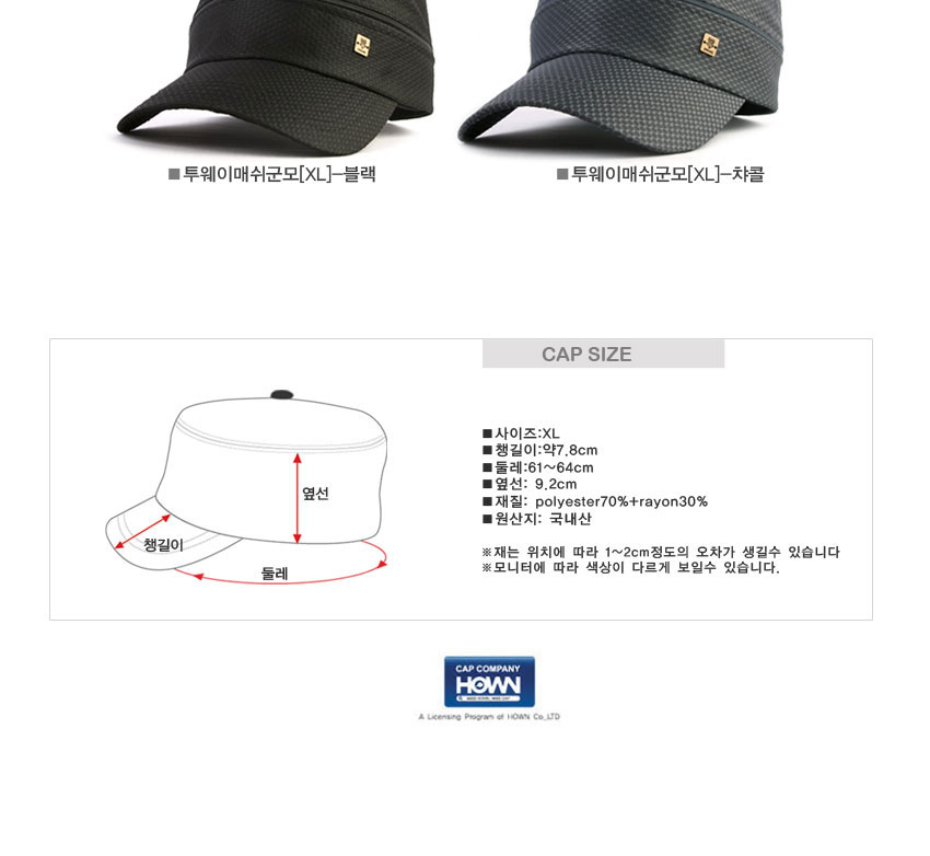 • 빅사이즈 투웨이 메쉬캡 군모 썬바이저모자