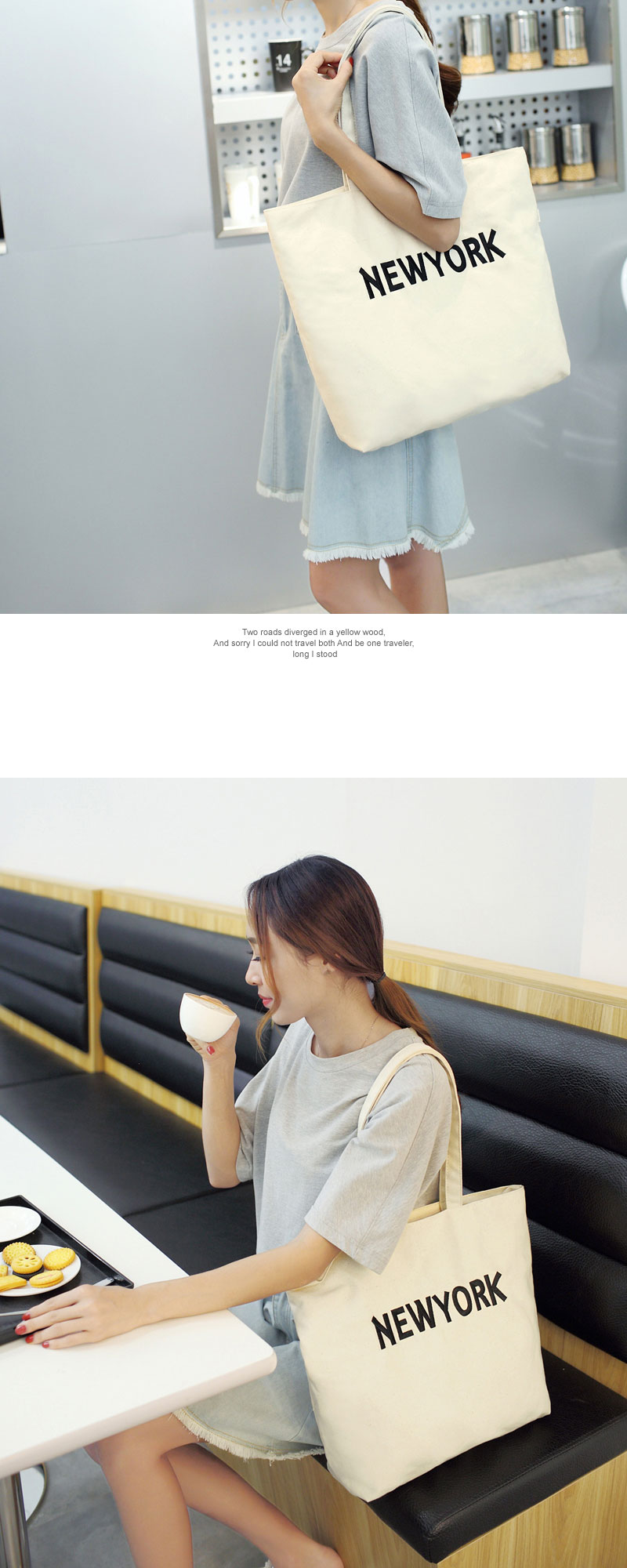 • 캔버스 지퍼잠금 레터링에코백 데일리숄더백