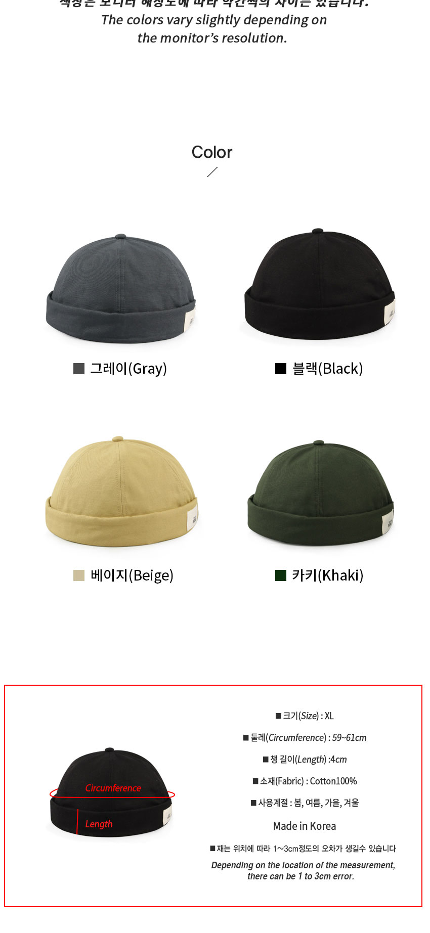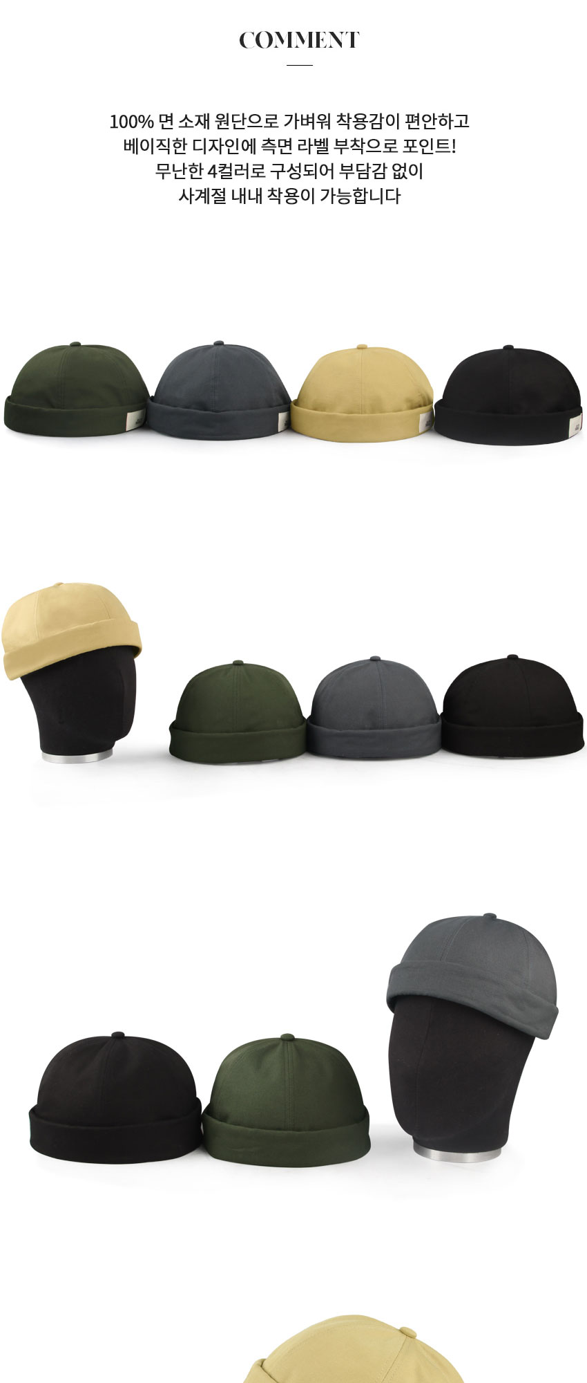• 빅사이즈 코튼 라벨장식 와치캡 남성모자
