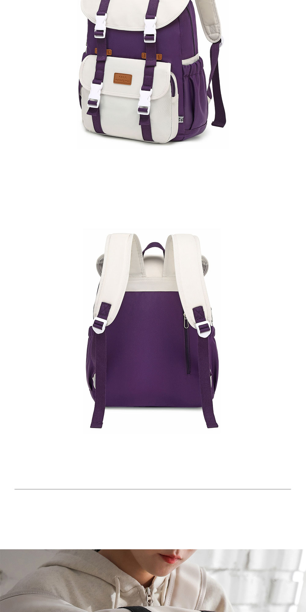 • 클립버클 스트랩 공용 캐주얼백팩 학생배낭