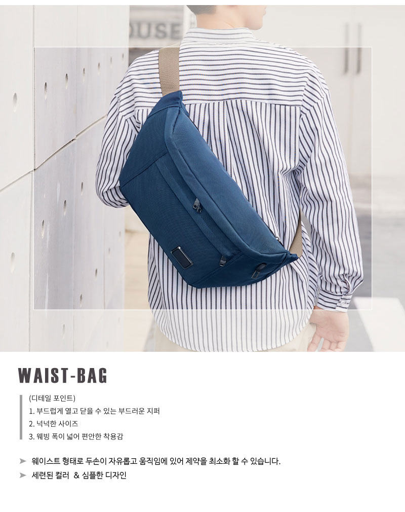 캐주얼 사각패치 웨이스트백 크로스바디백