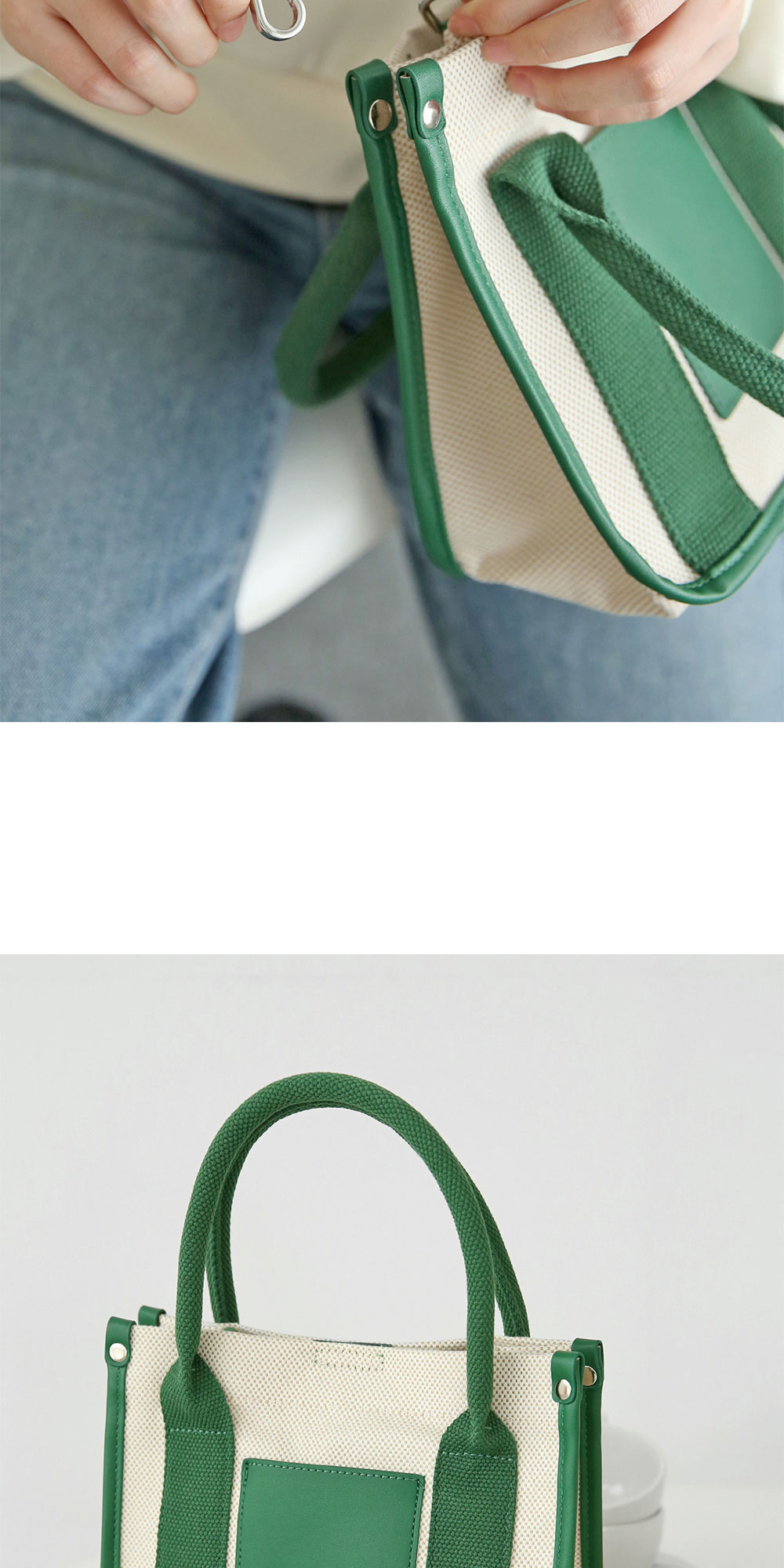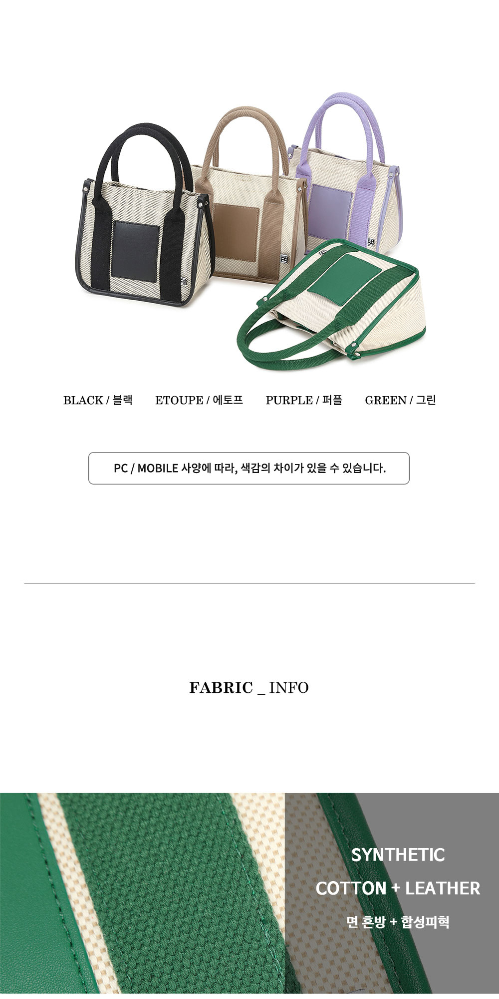 • 데일리 미니 사각 콤비 멀티 토트백