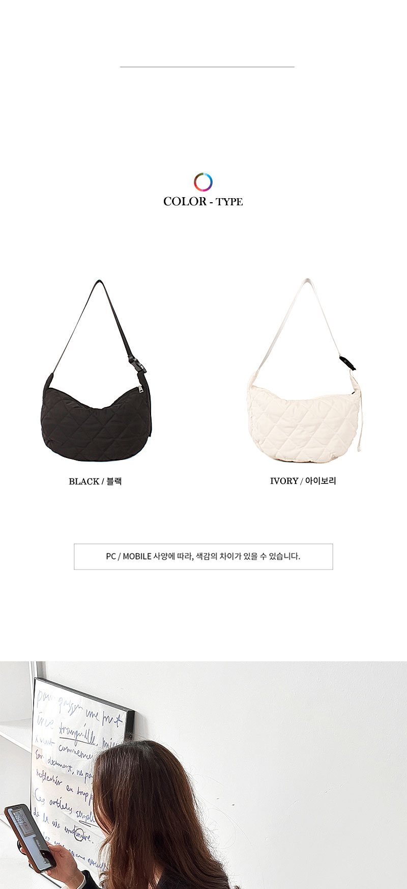 • 누빔 반달모양 데일리크로스백 여성캐주얼백