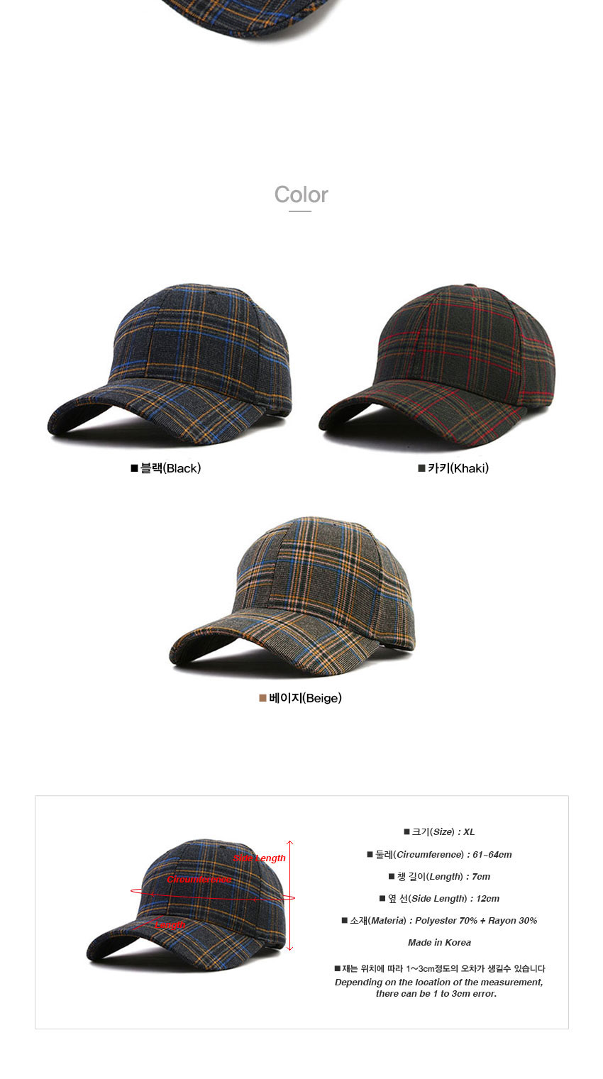 • 빅사이즈 컬러체크 패션 야구모자 볼캡