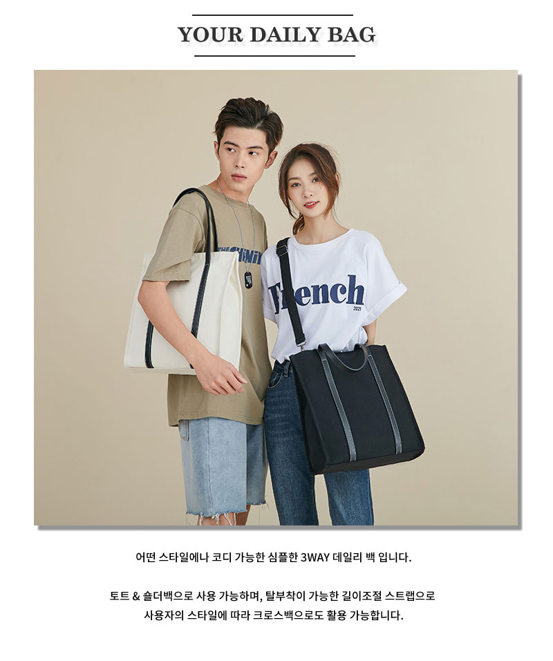 • 심플 스퀘어 토트백 숄더 크로스백 커플가방