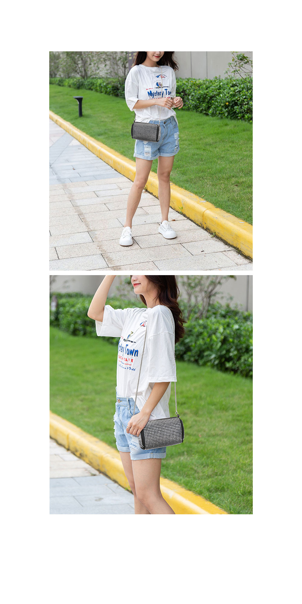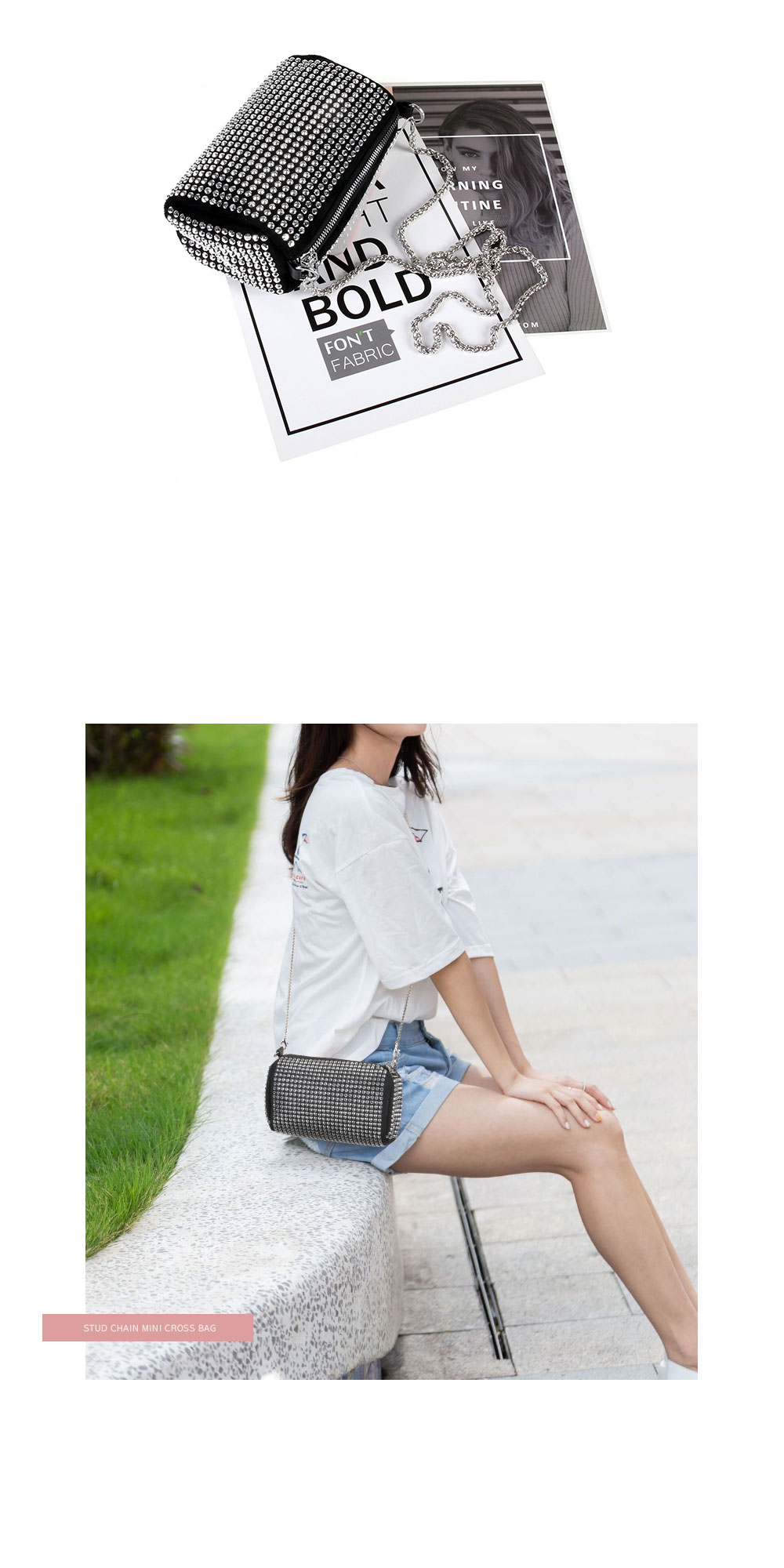 • 여성 스터드 미니백 체인백 크로스 가방