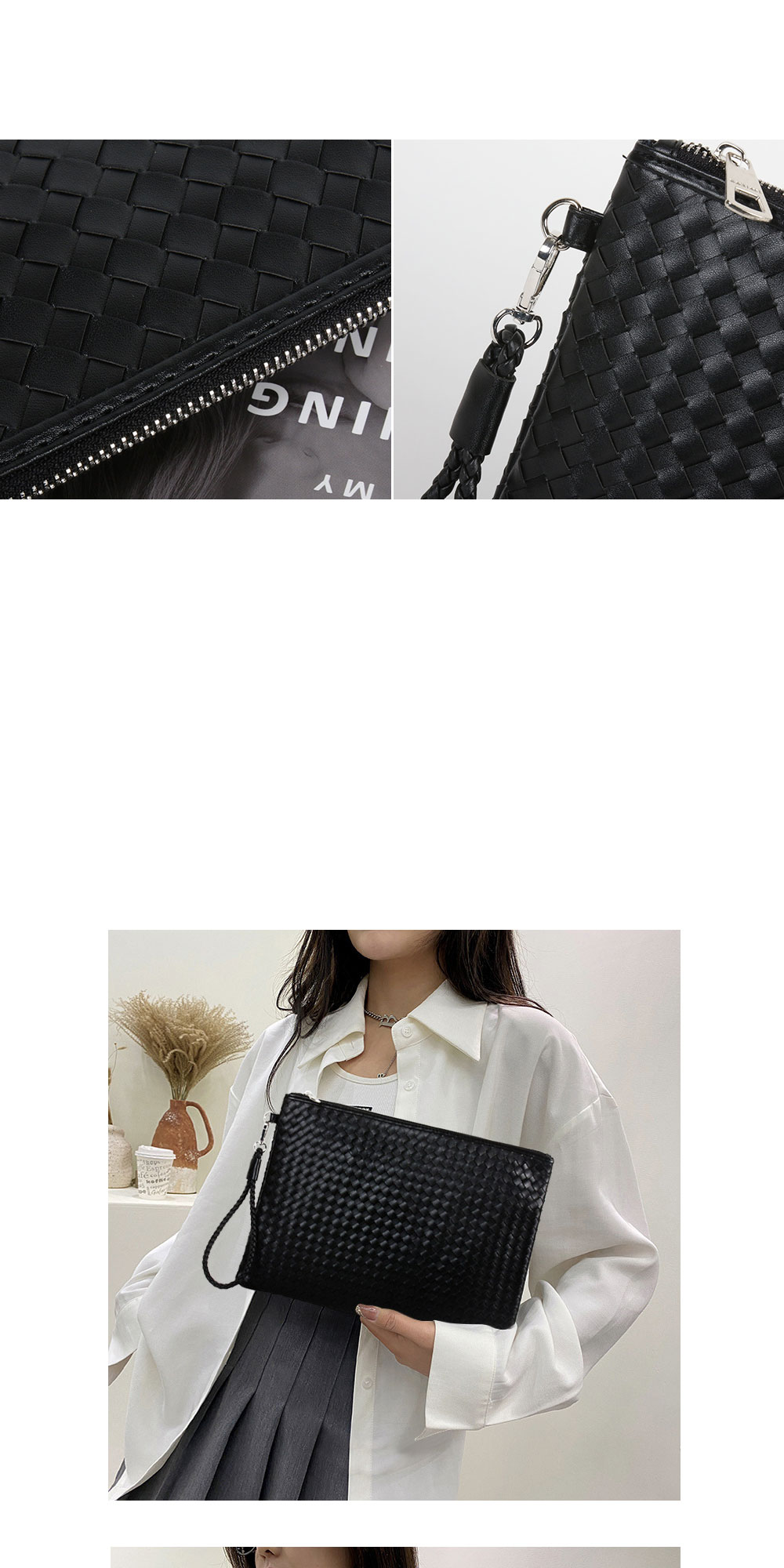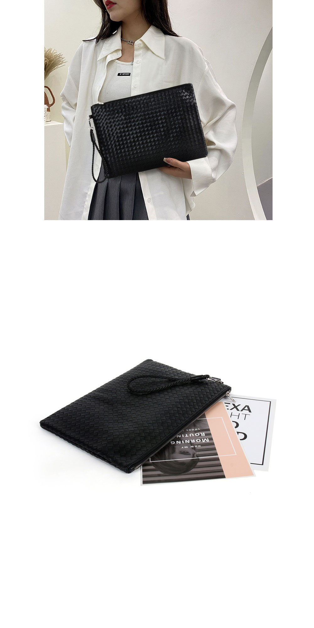 • 남녀공용 짜임 빅 손가방 파우치 클러치백