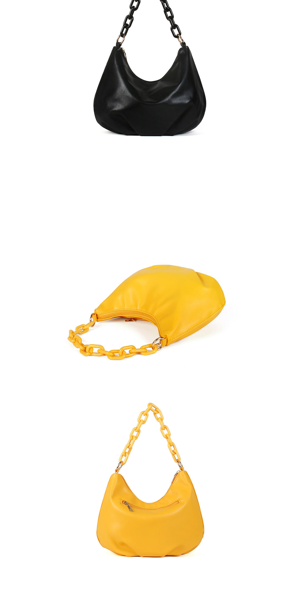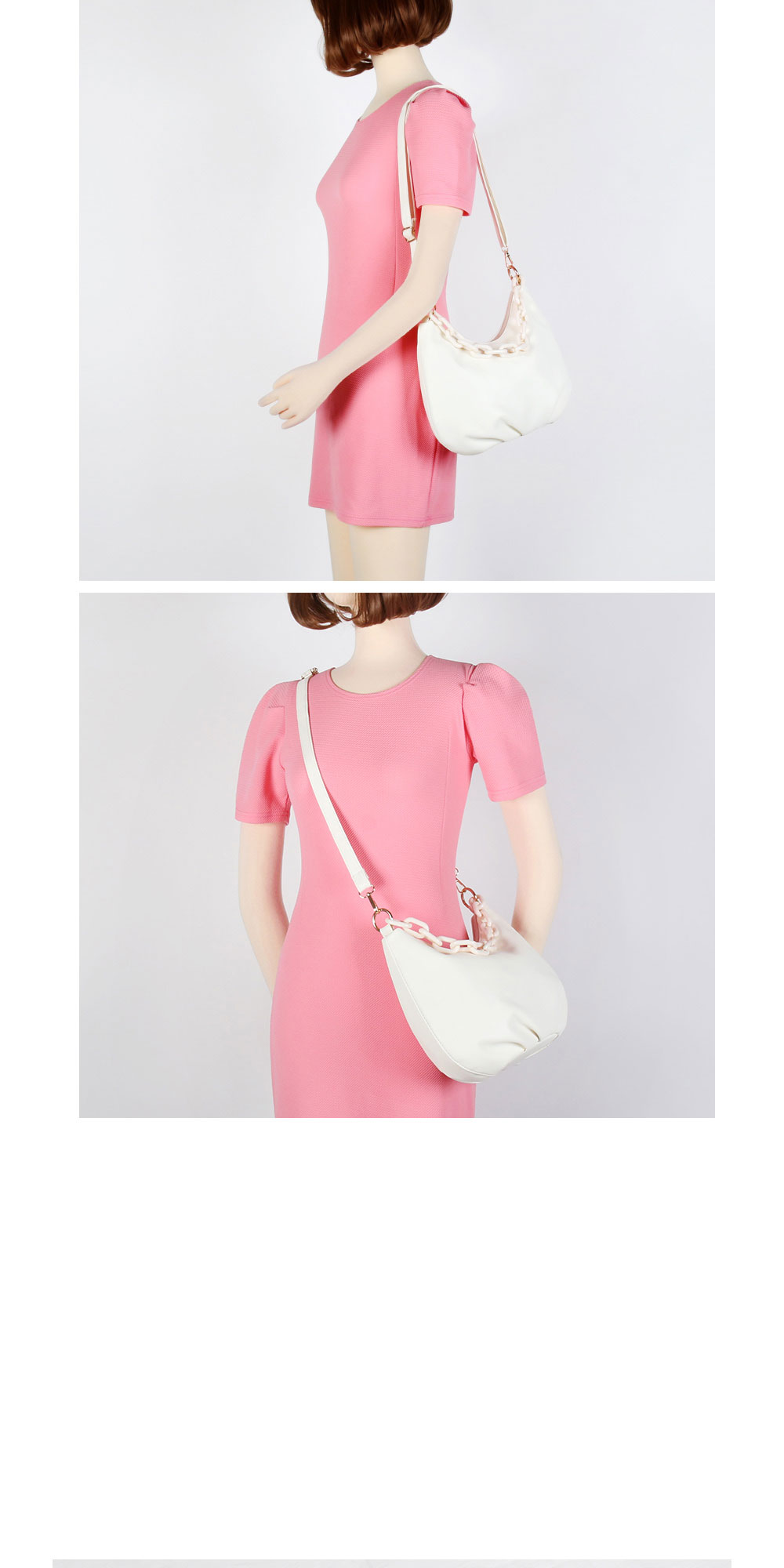 • 여성 셔링 심플 체인 숄더 크로스백 호보백