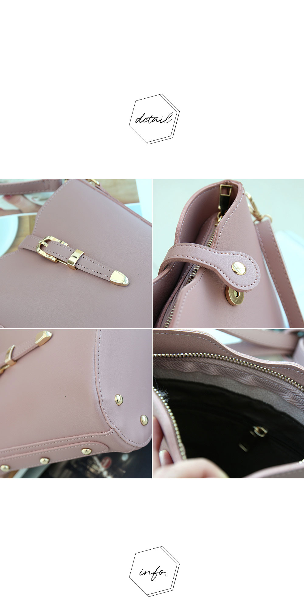 • 여성 벨티드 스터드 숄더 크로스백 버킷백