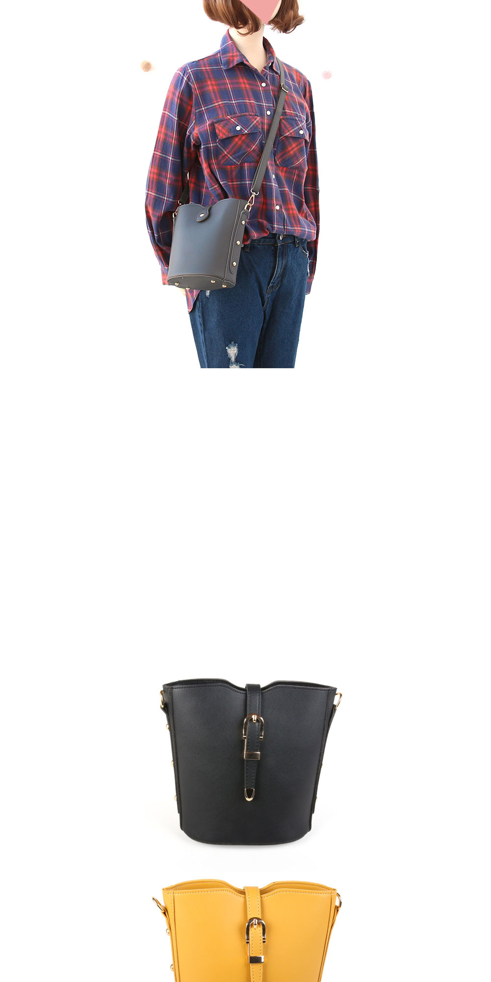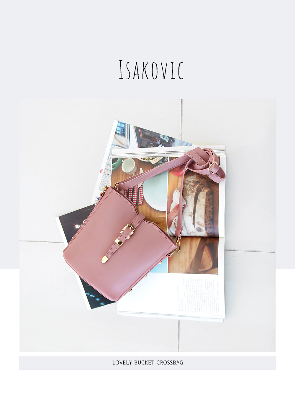 여성 벨티드 스터드 숄더 크로스백 버킷백