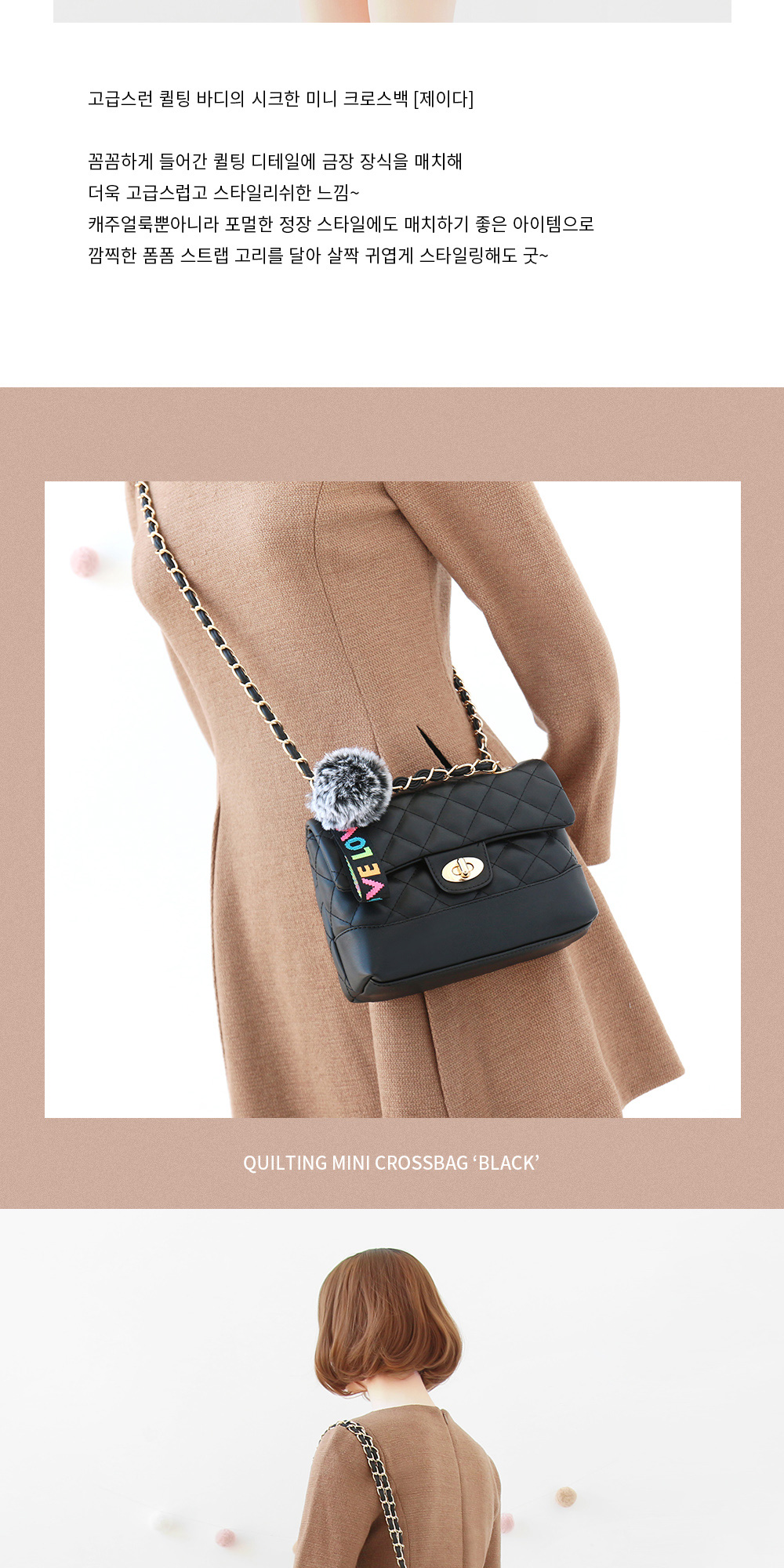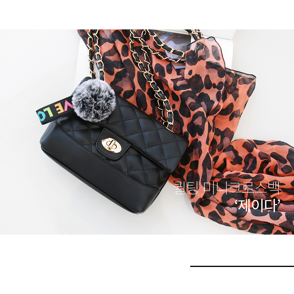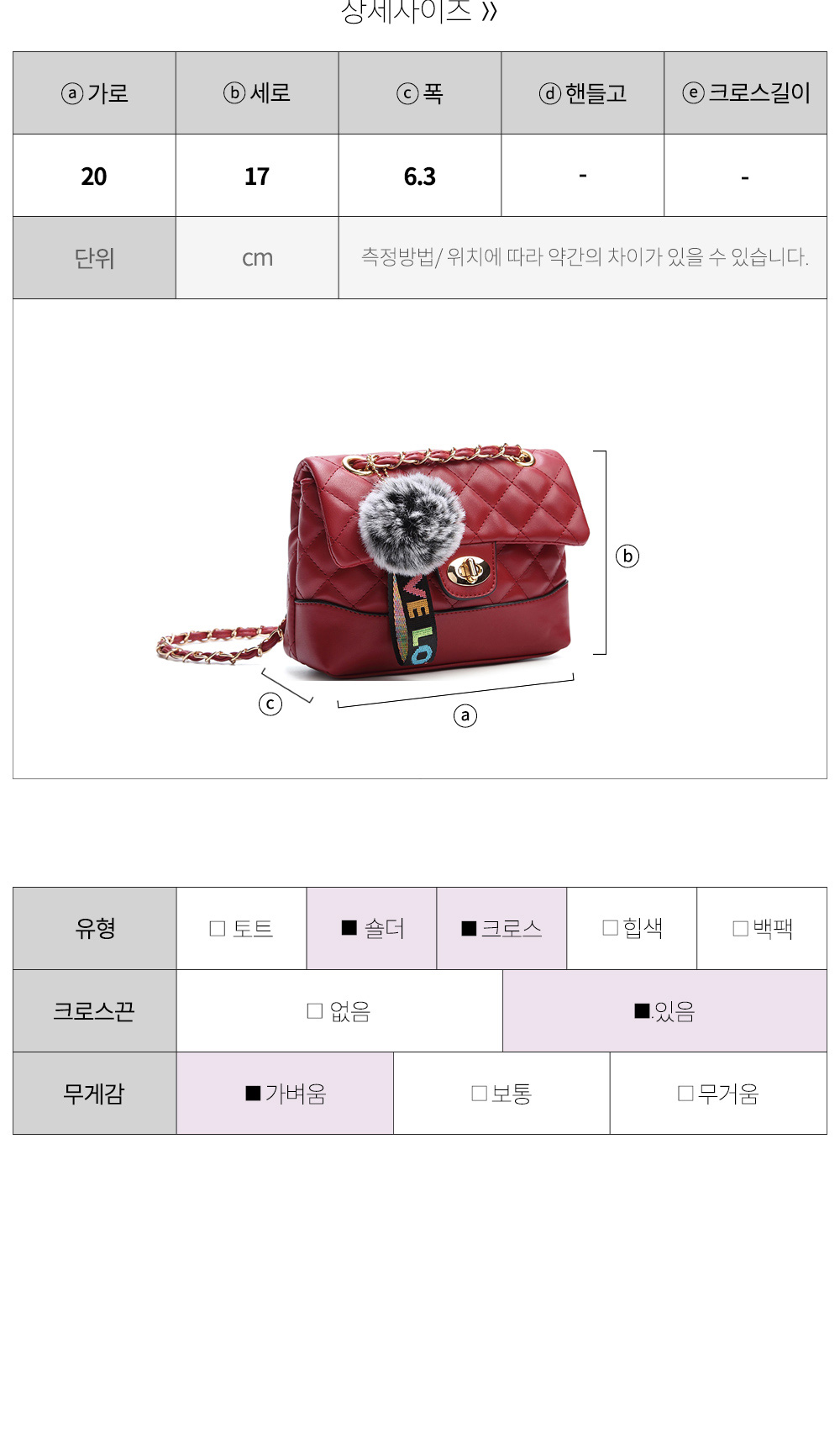 여성 퀼팅 폼폼장식 크로스 미니백 체인백