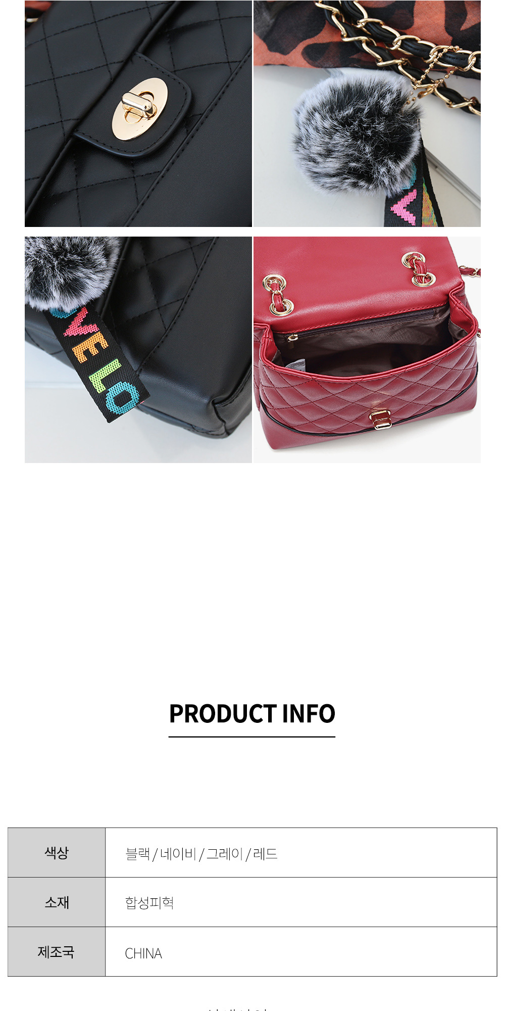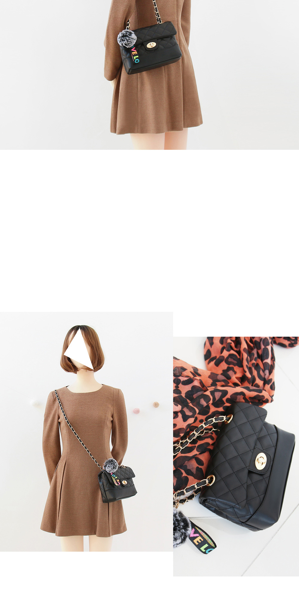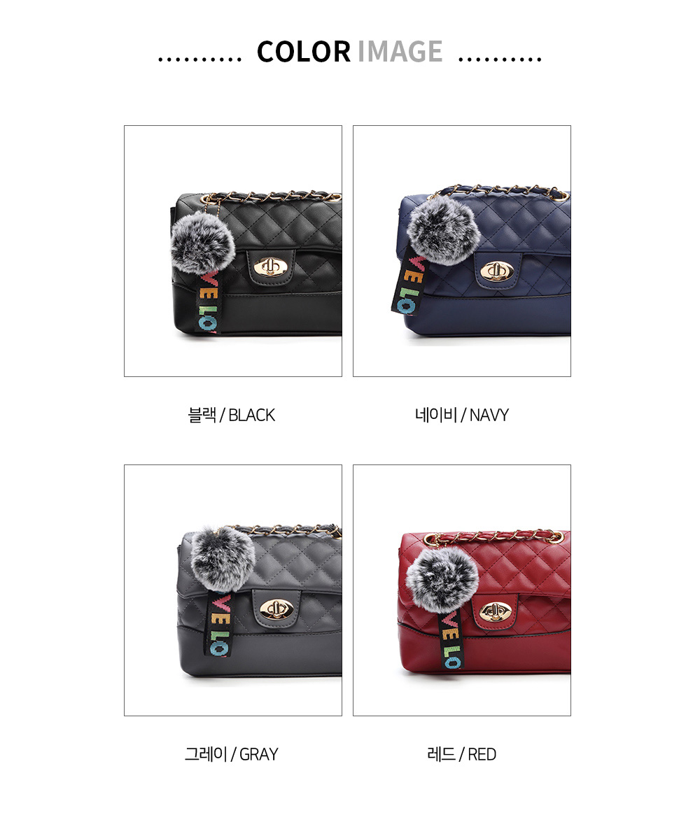 여성 퀼팅 폼폼장식 크로스 미니백 체인백