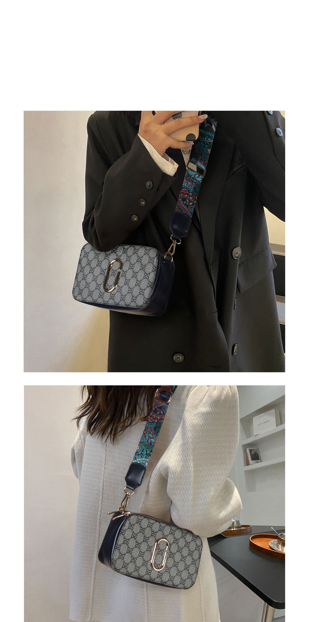 • 여성 포멀 패턴 스트랩 크로스백 미니백