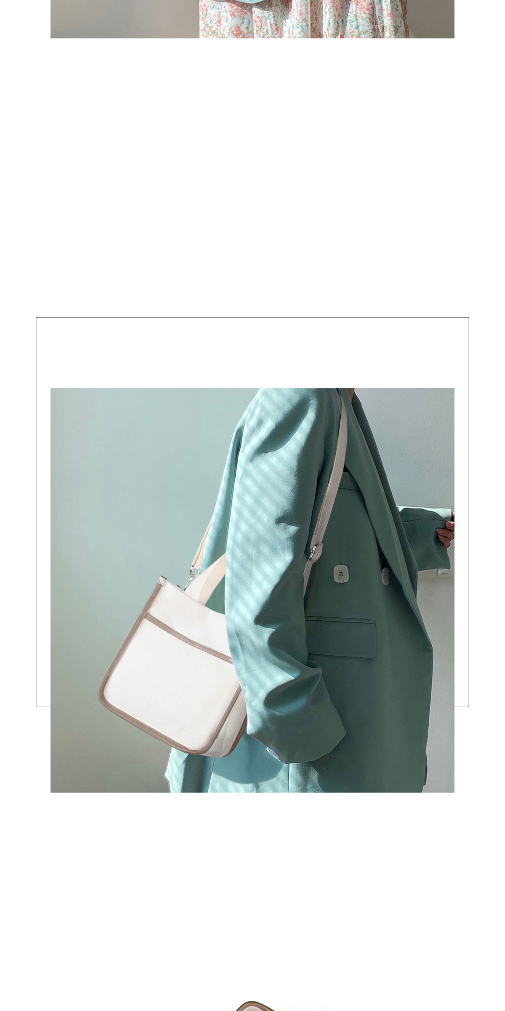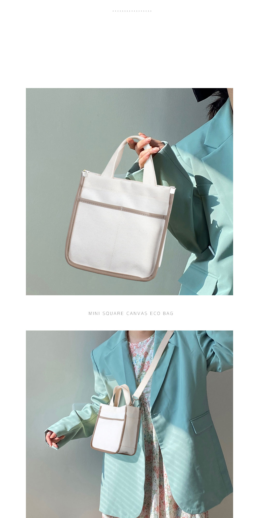 여성 파이핑 캔버스 스퀘어 토트백 크로스백