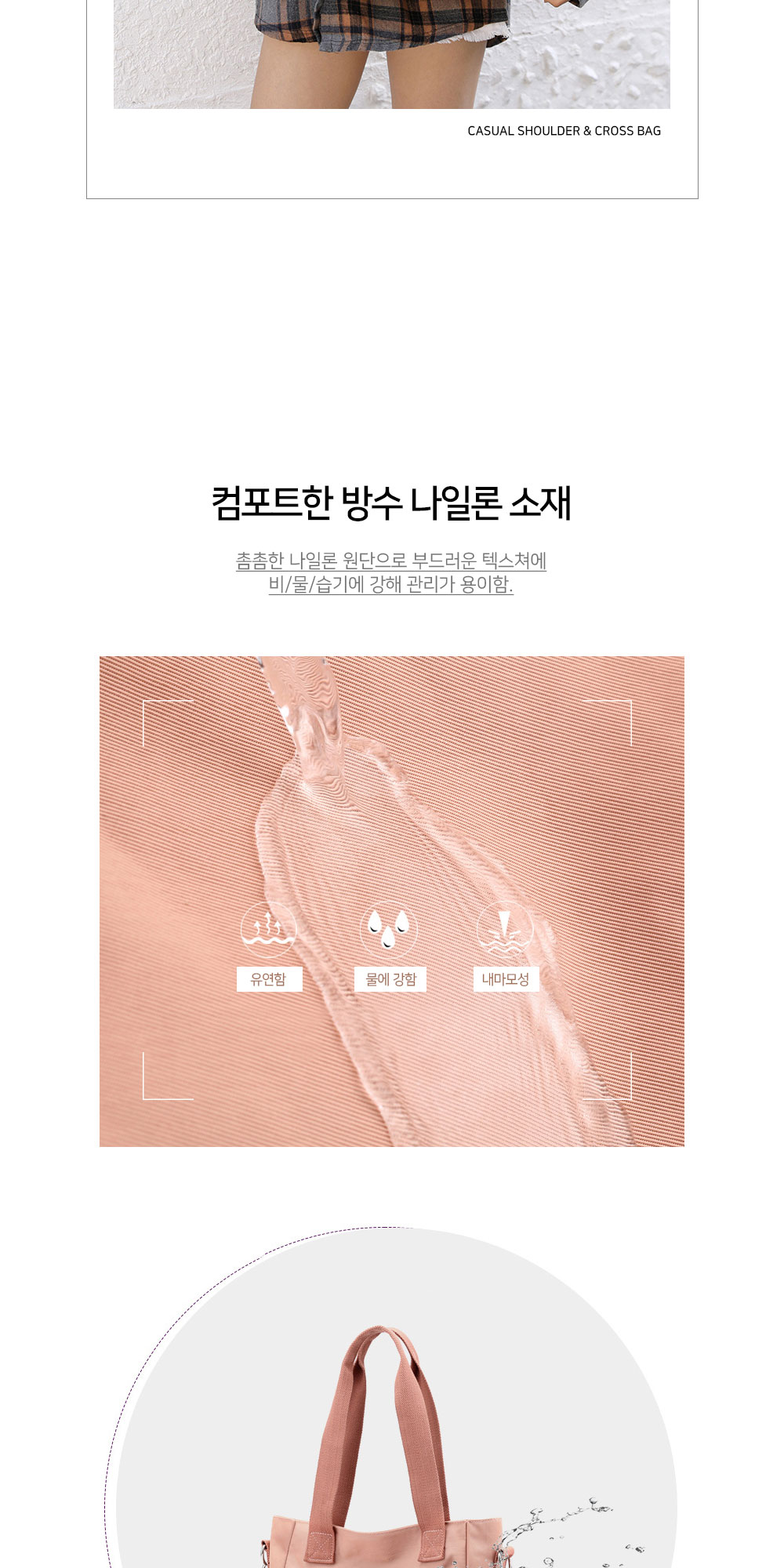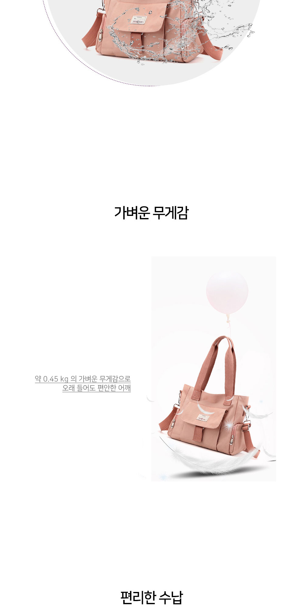 • 여성 방수 찍찍이포켓 숄더 크로스백 가방