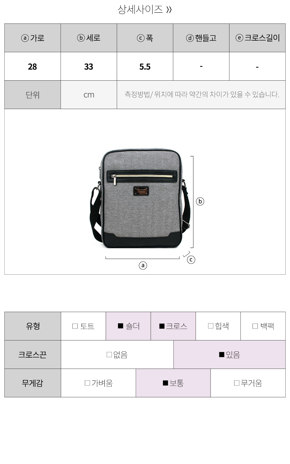 • 메탈뱃지 지퍼 사각 메신저 크로스백 가방