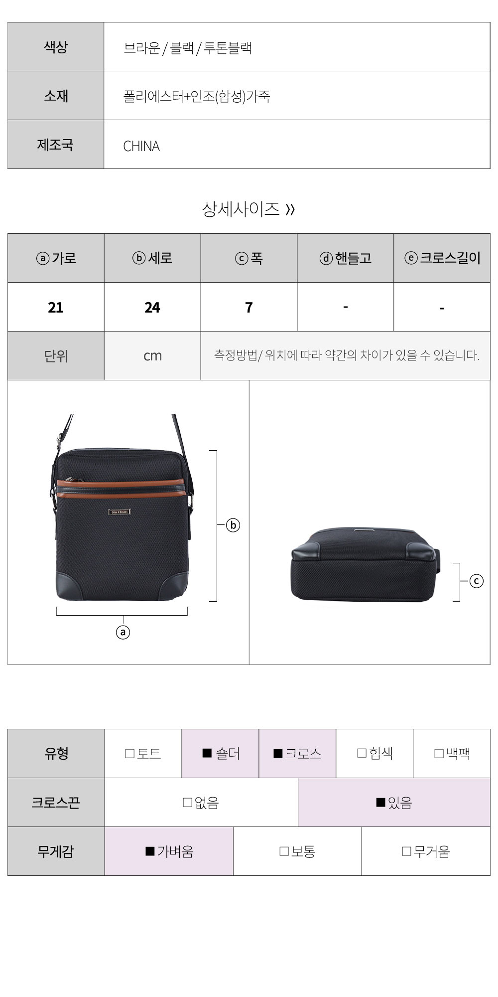 • 남성 크로스백 배색 캐주얼 메신저 가방