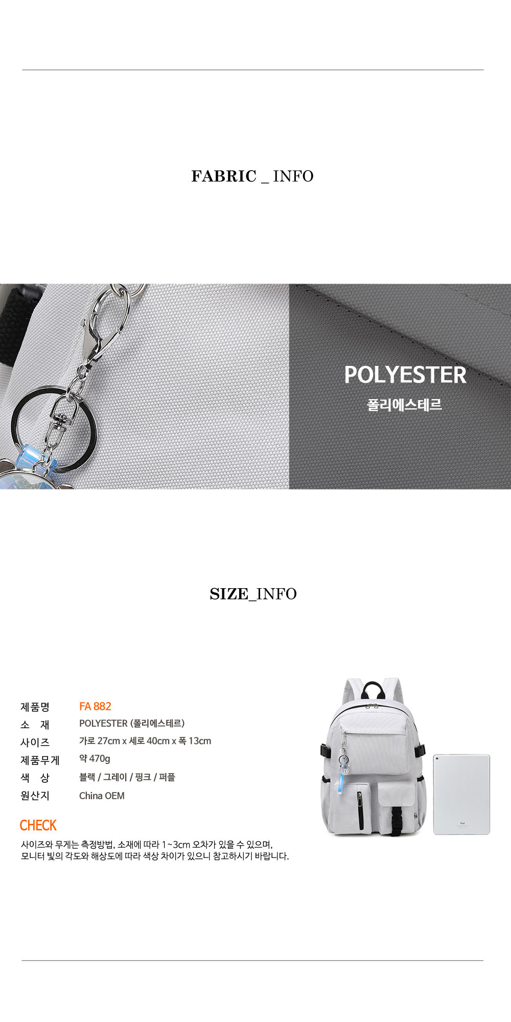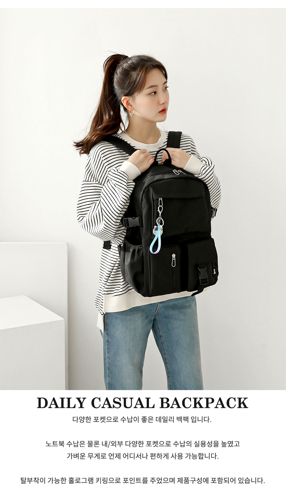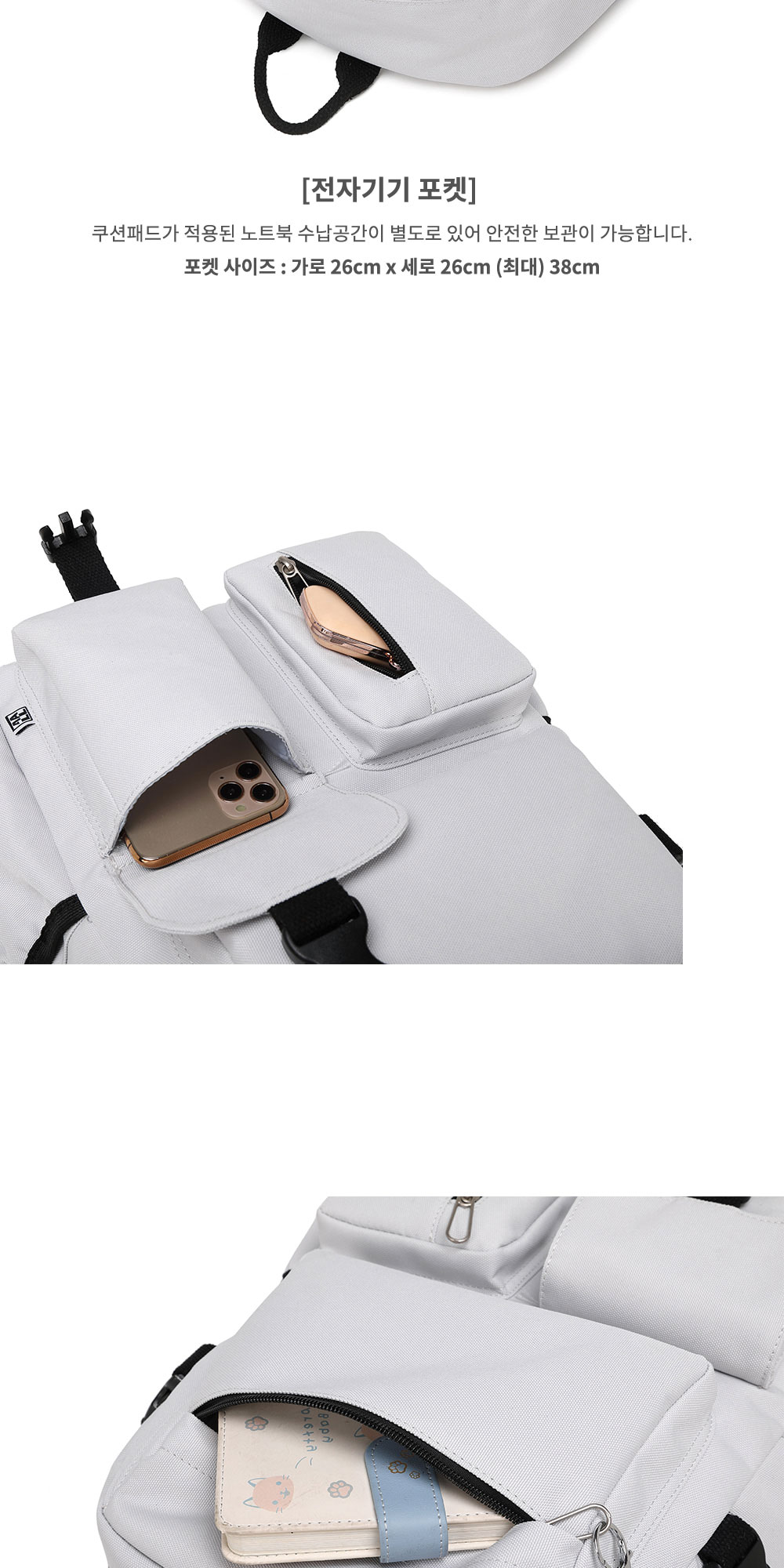 무지패턴 사각포켓 학생책가방 데일리백팩