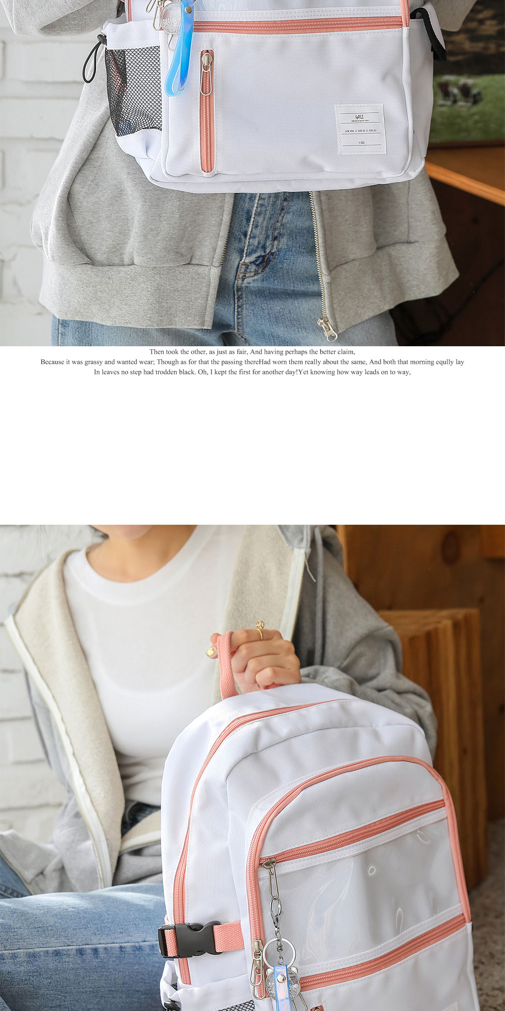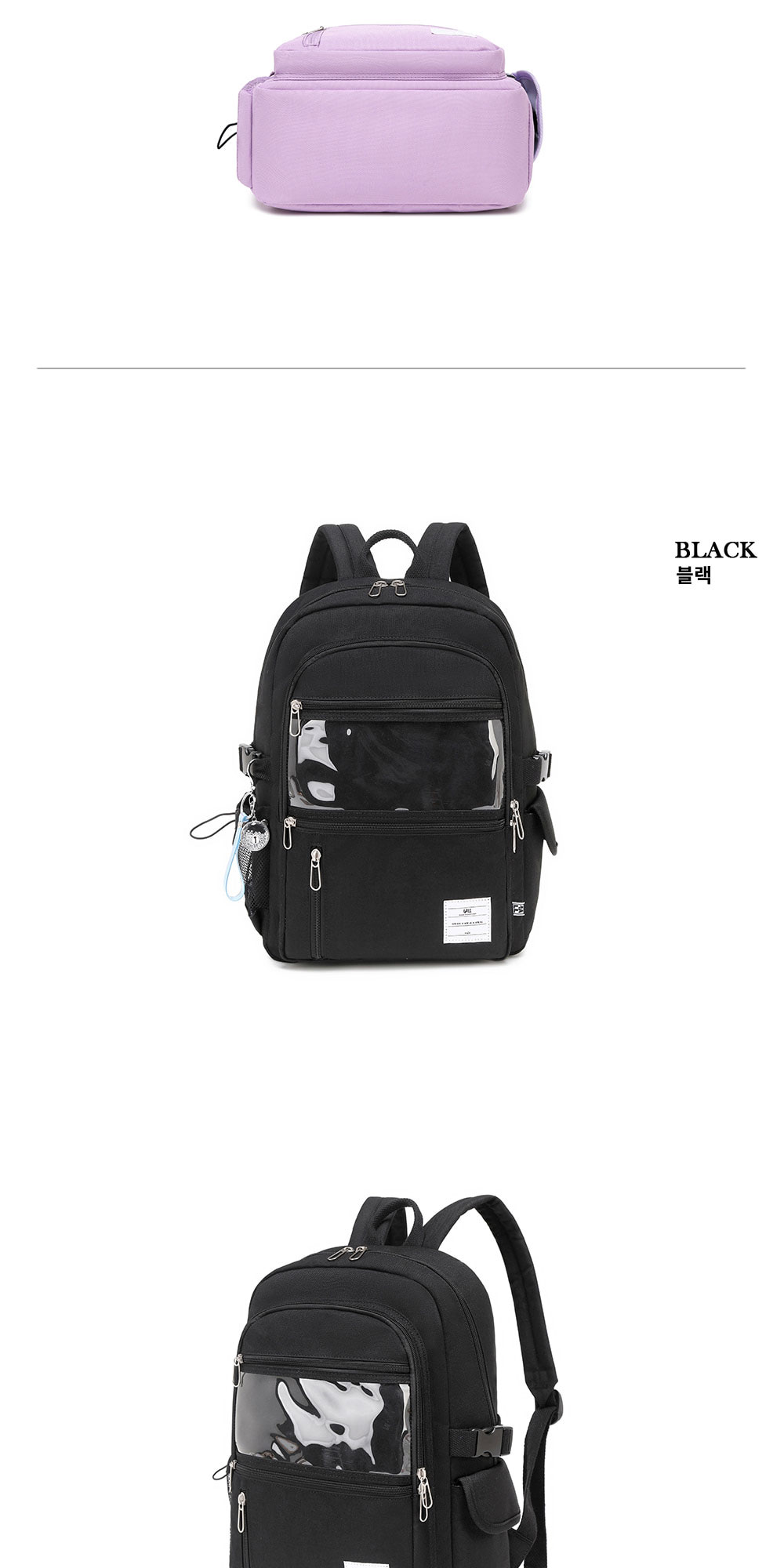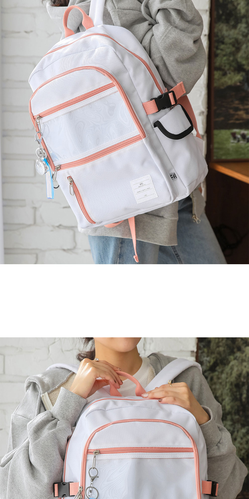 • 캐주얼 투명포켓 공용 학원가방 학교백팩