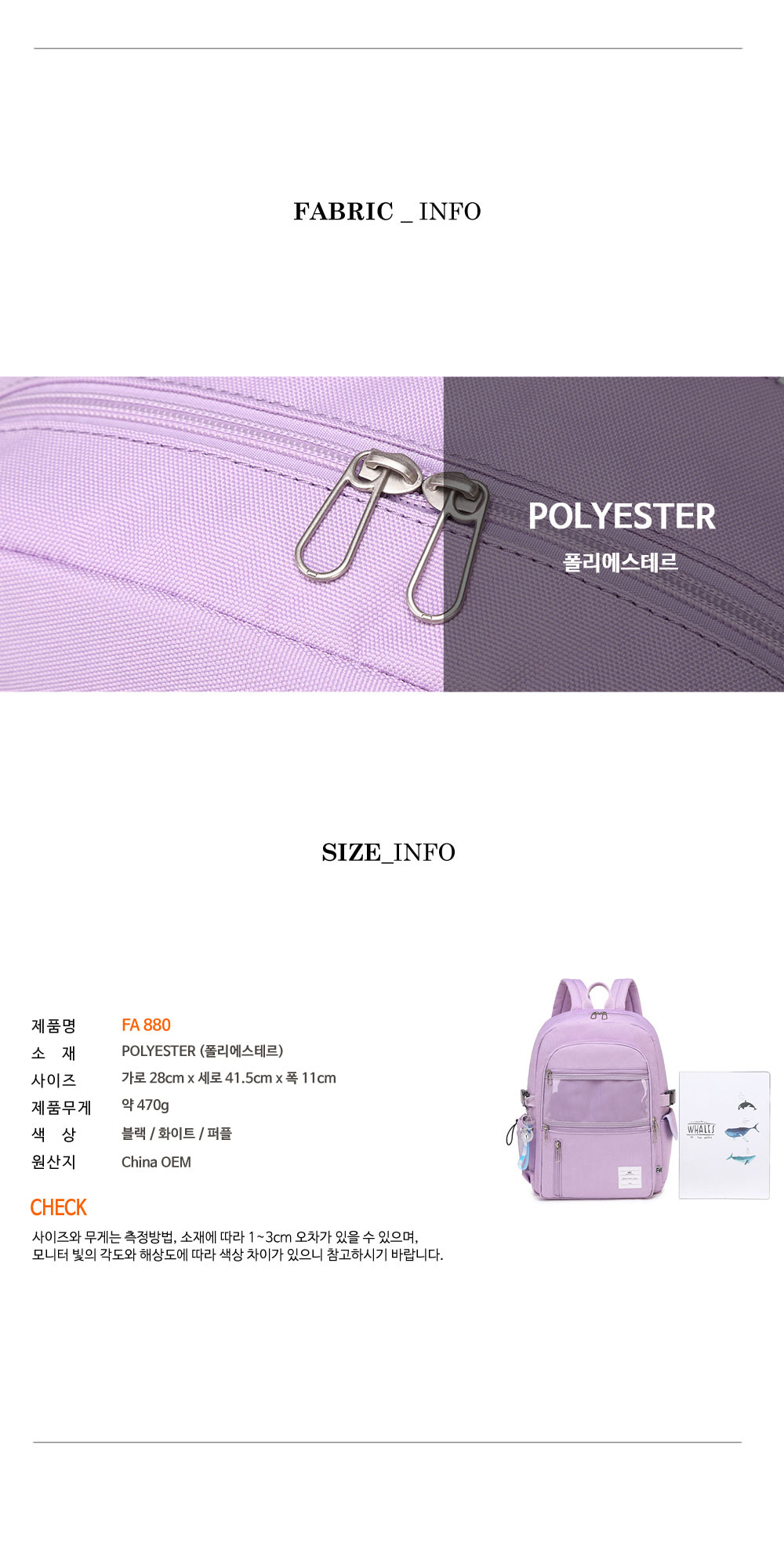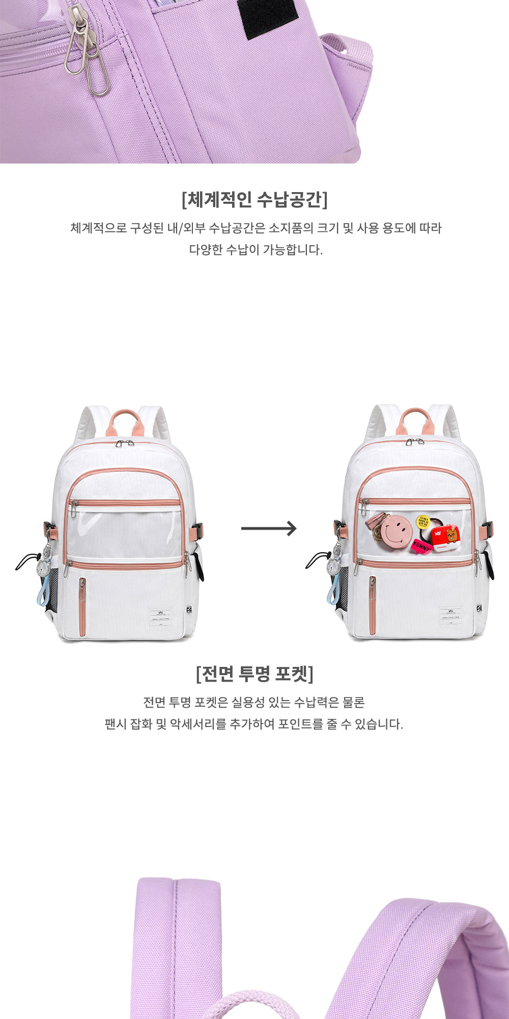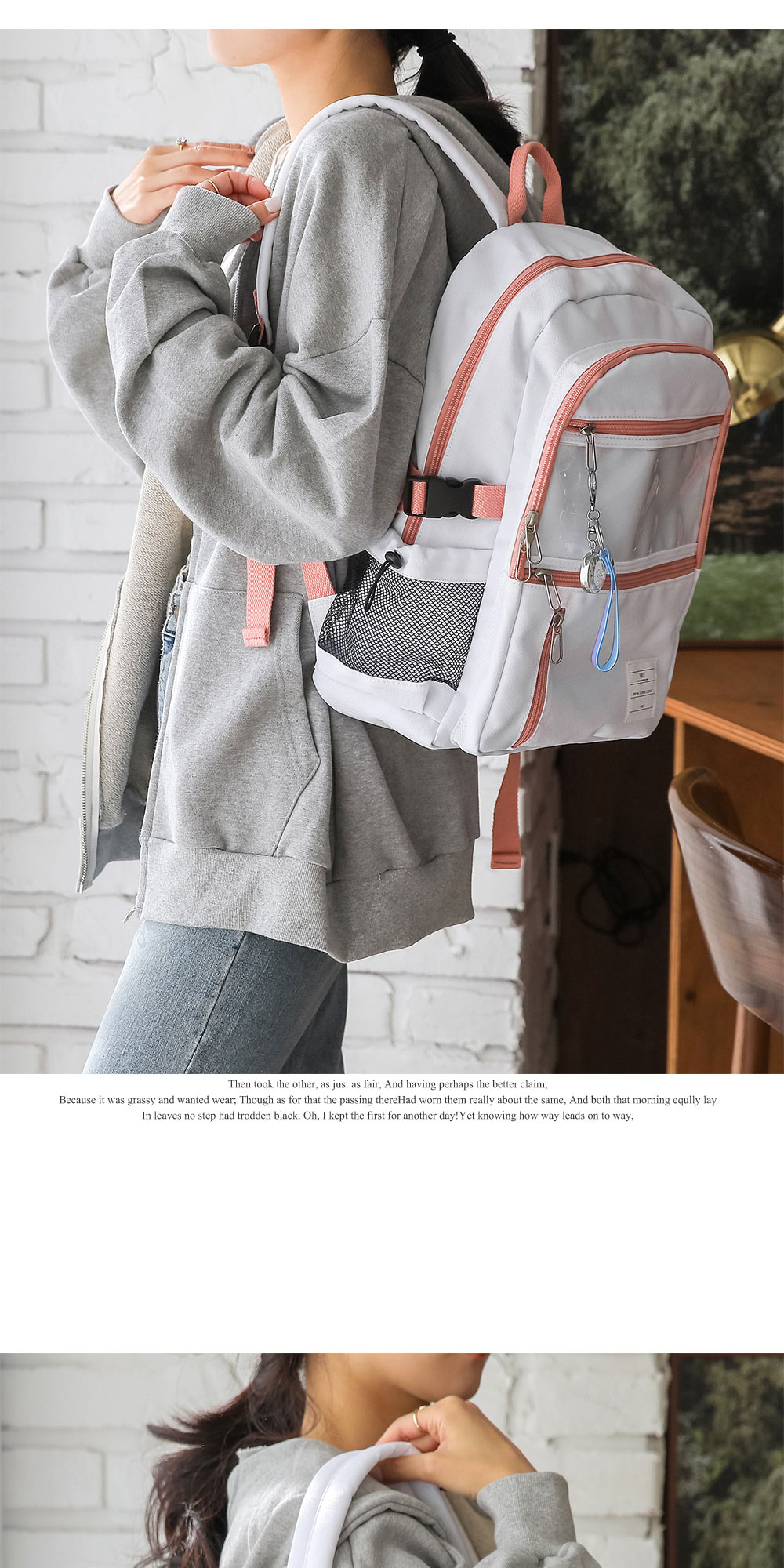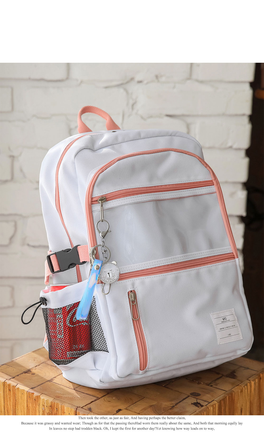 • 캐주얼 투명포켓 공용 학원가방 학교백팩