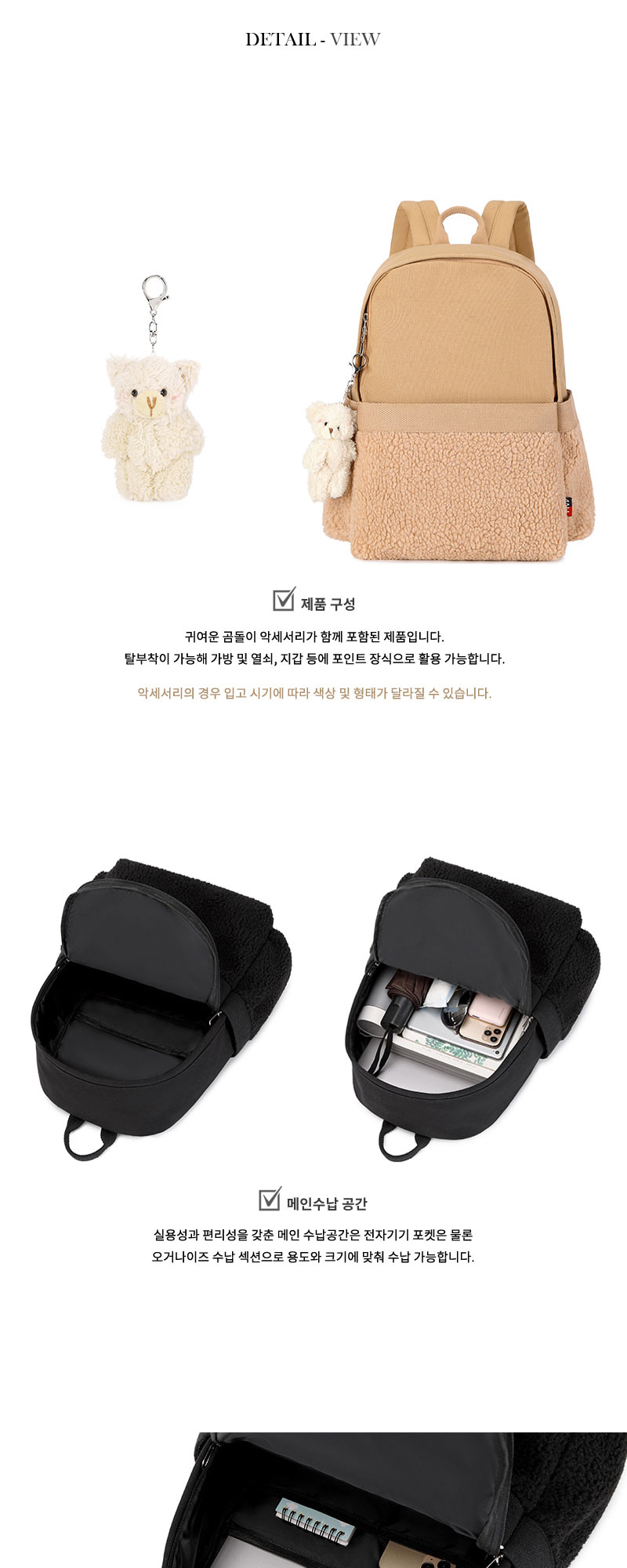 • 하프뽀글 귀여운 여학생가방 여대생백팩