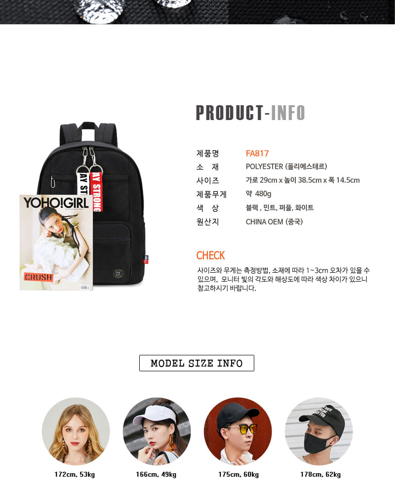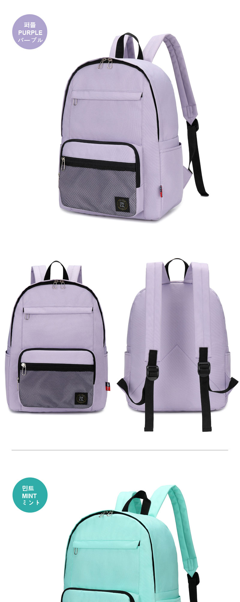 • 베이직 라운딩지퍼 신학기가방 데일리백팩