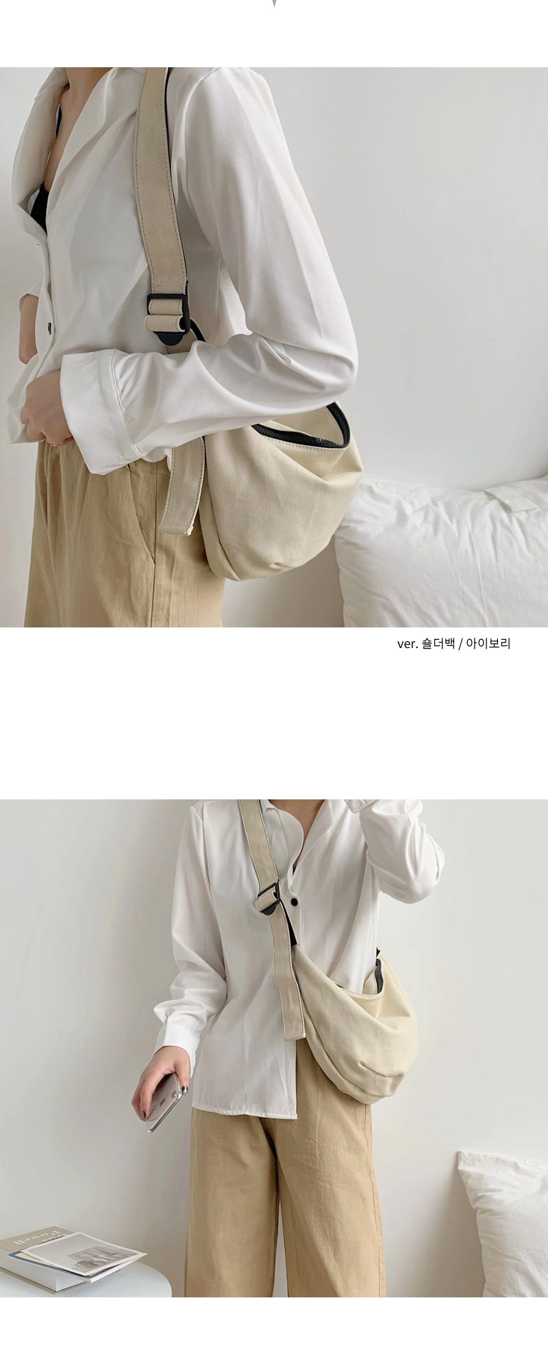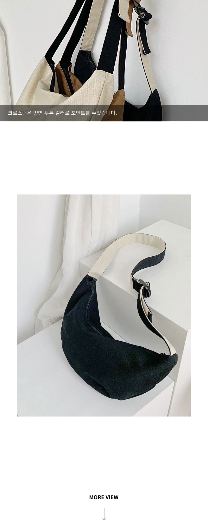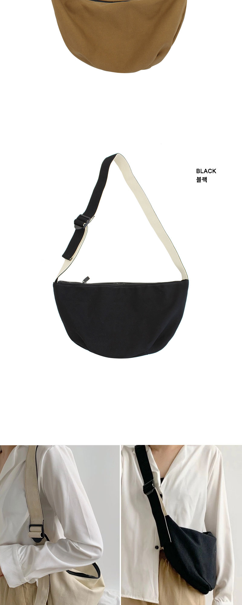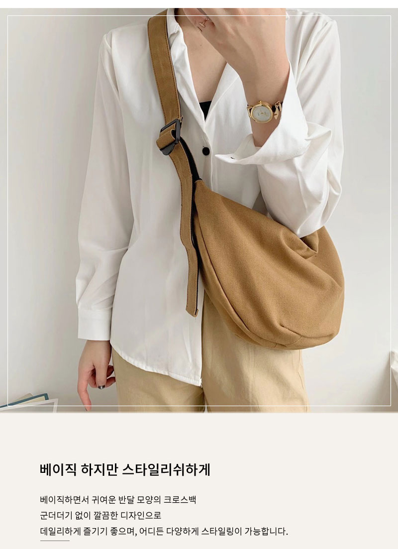 • 코튼 무지패턴 반달크로스백 대학생가방