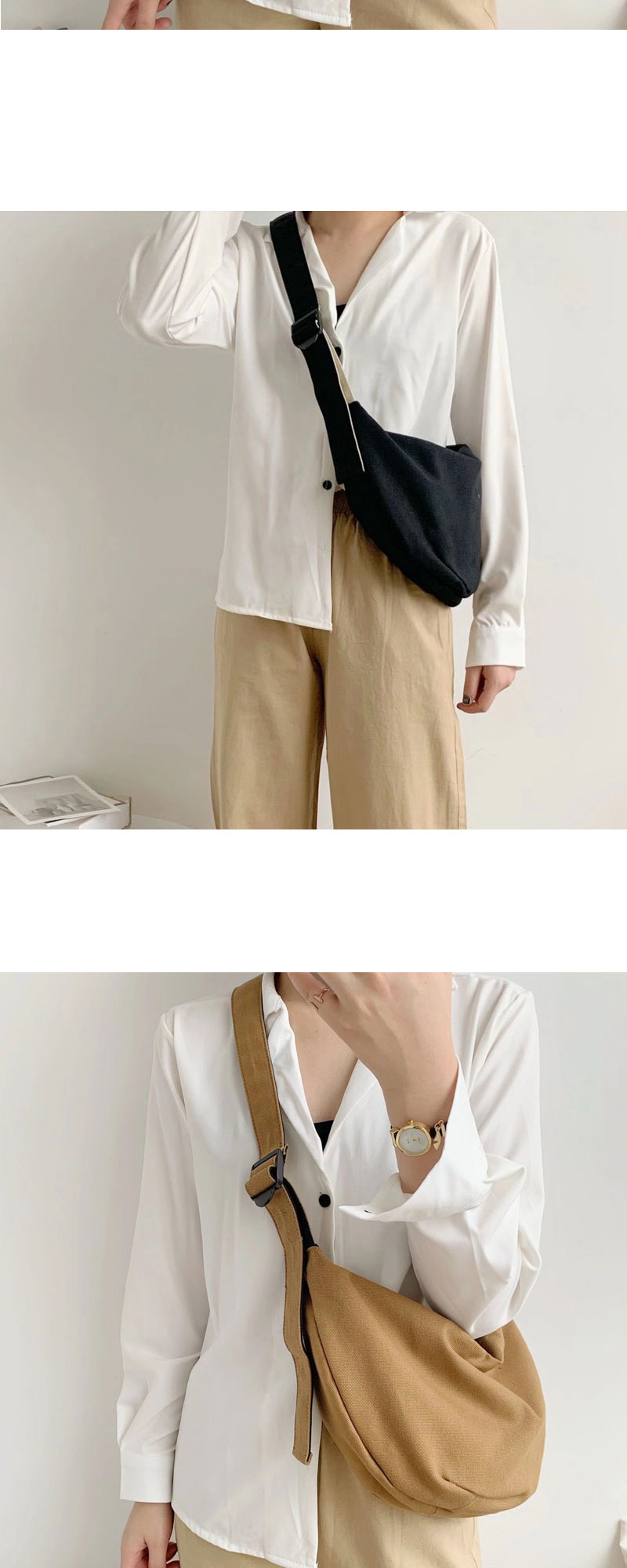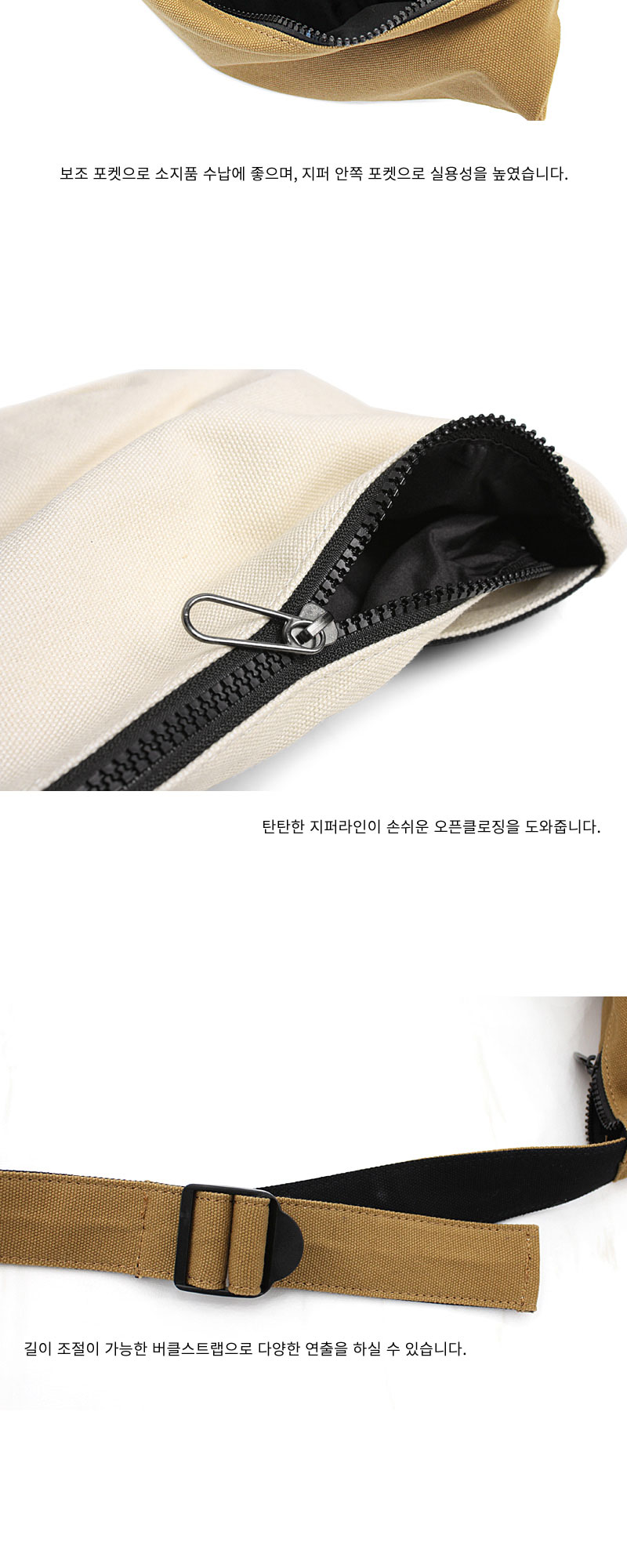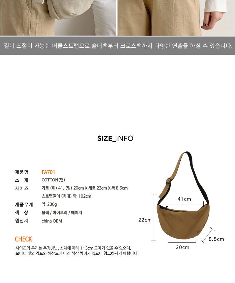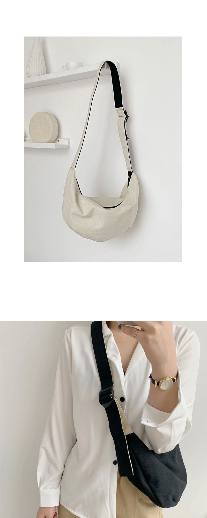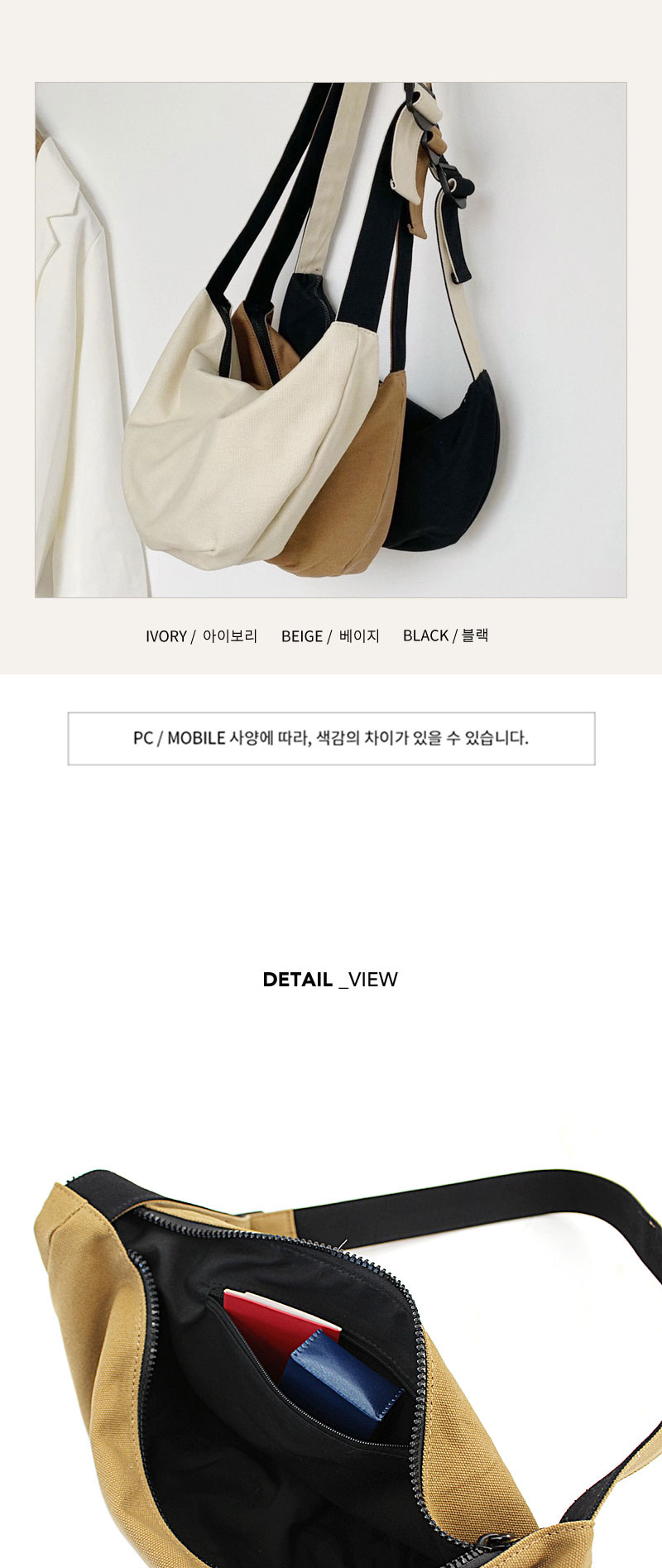 • 코튼 무지패턴 반달크로스백 대학생가방