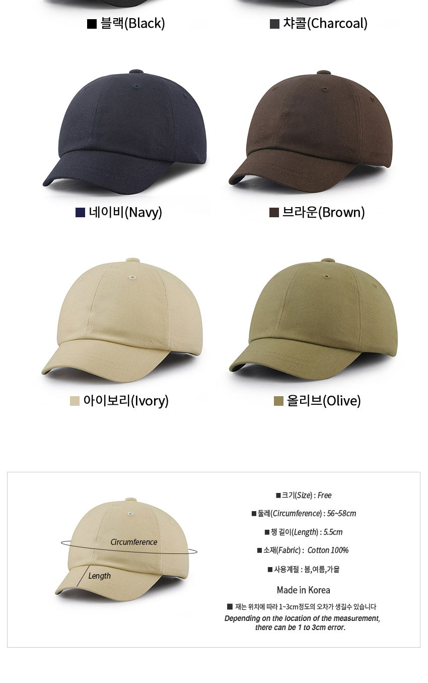 • 베이직 코튼 숏챙 남자 여자 볼캡 캡모자