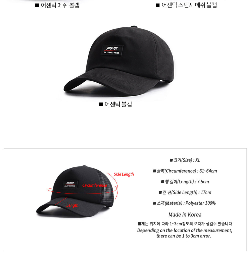 • 빅사이즈 로고 사각패치 XL 볼캡 패션모자