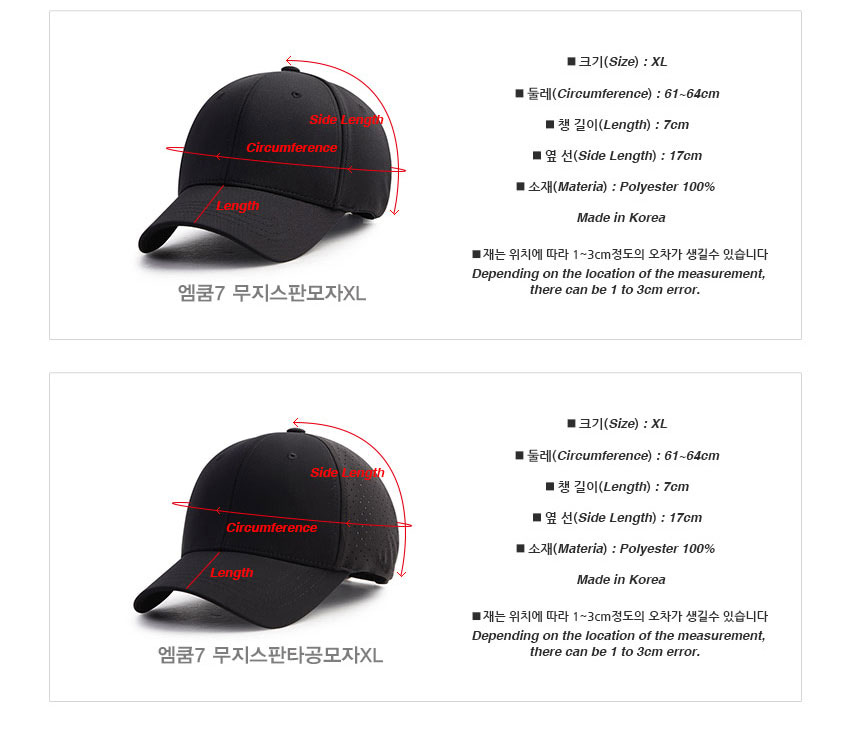 빅사이즈 무지패턴 블랙 볼캡 데일리모자