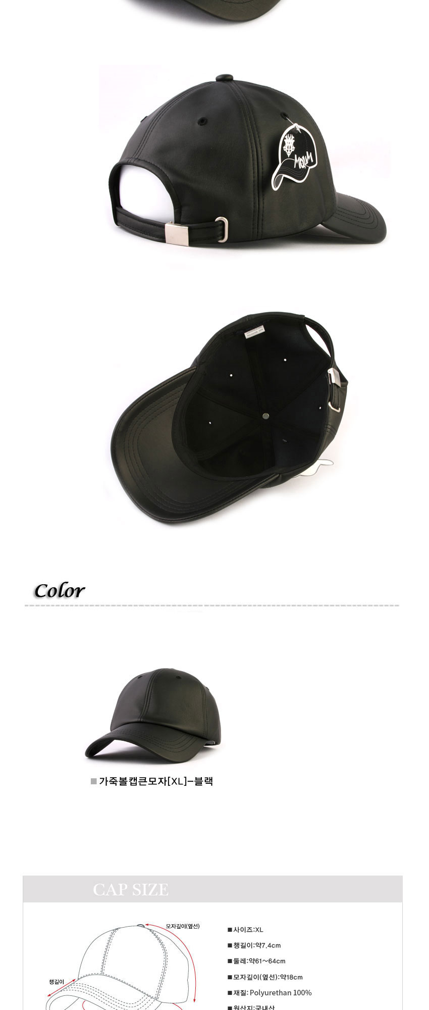 • 빅사이즈 페이크레더 검정볼캡 캡모자