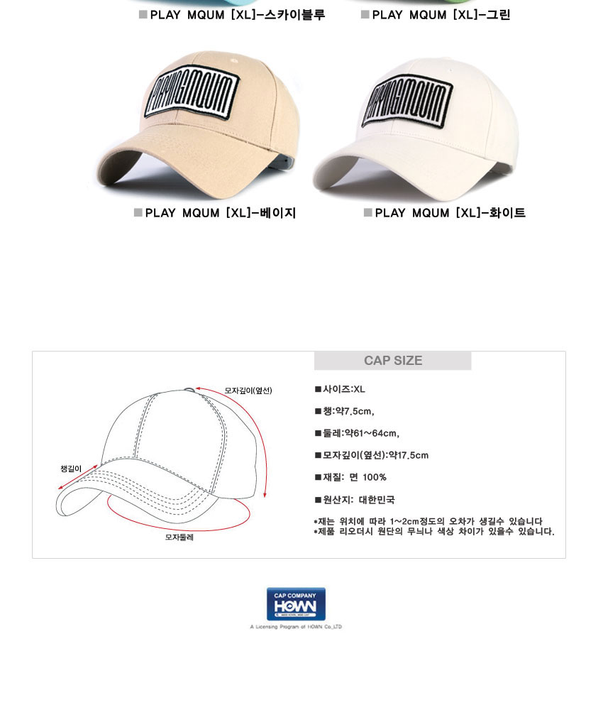 빅사이즈 사각 빅로고 XL 야구모자 볼캡