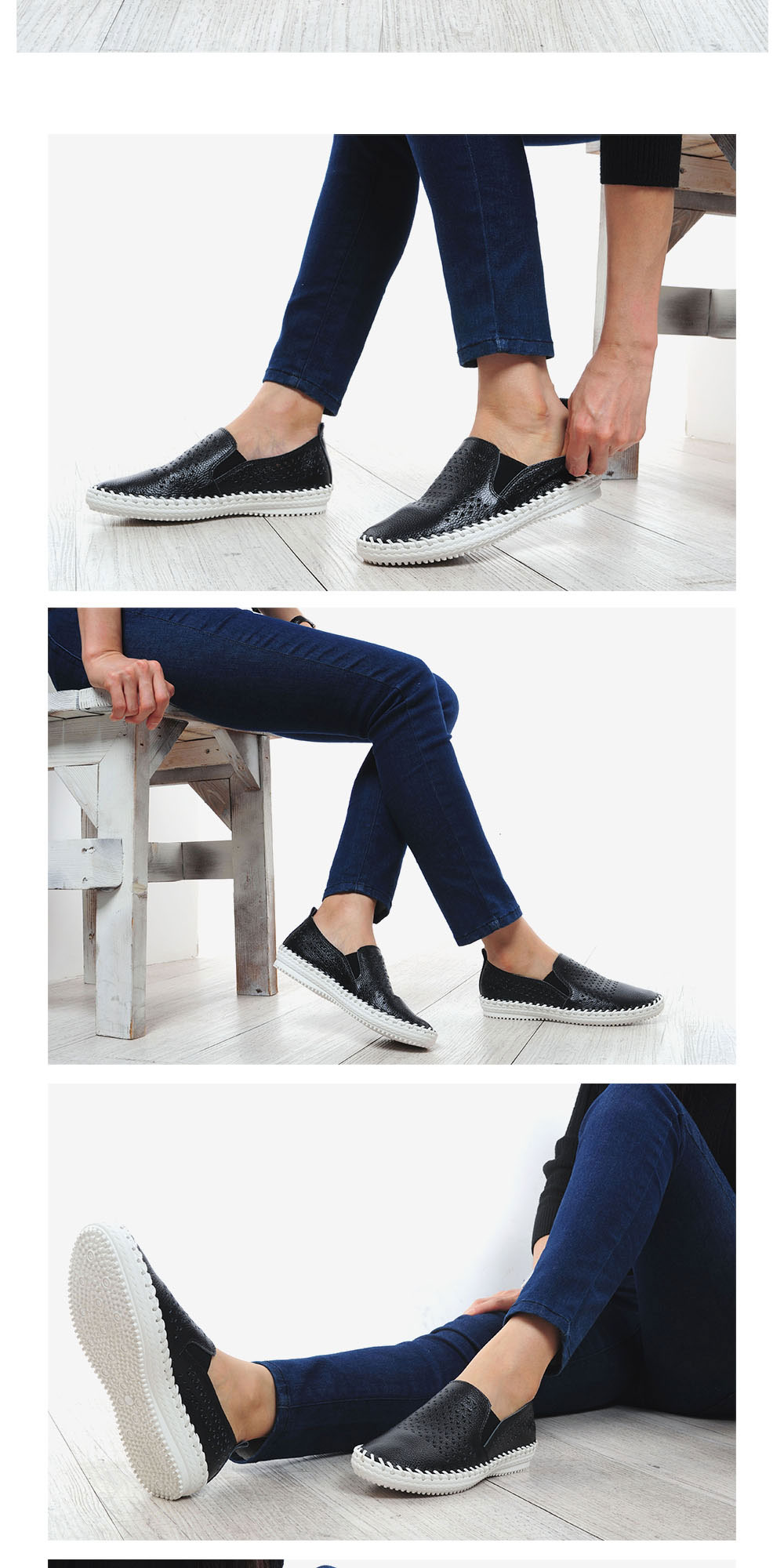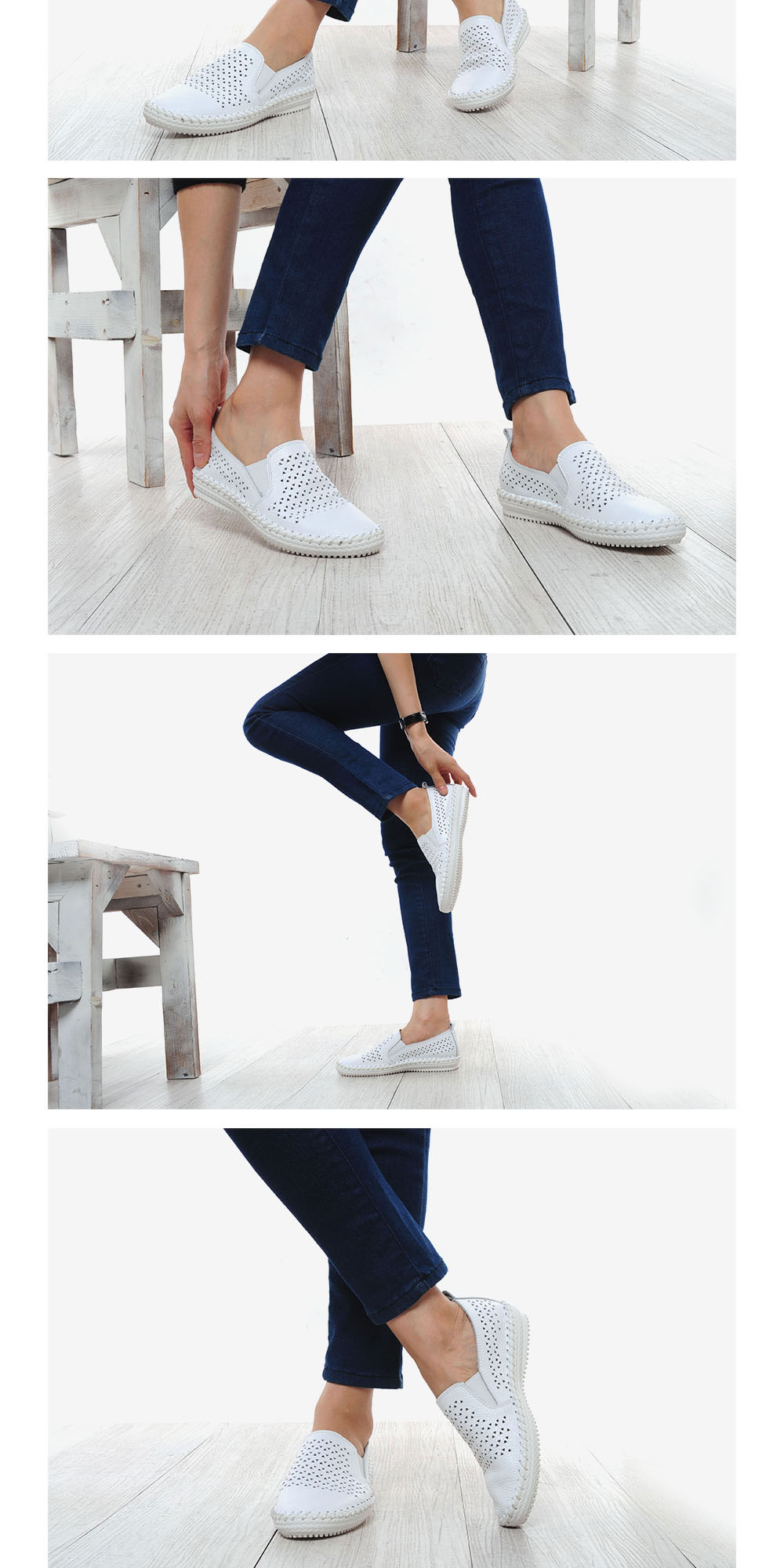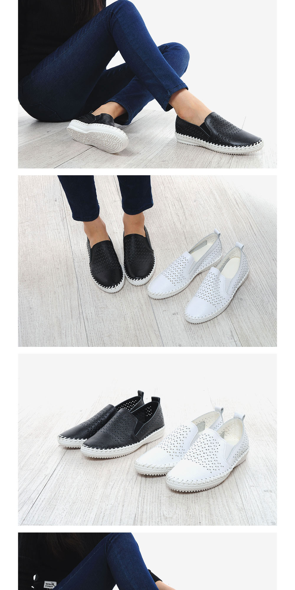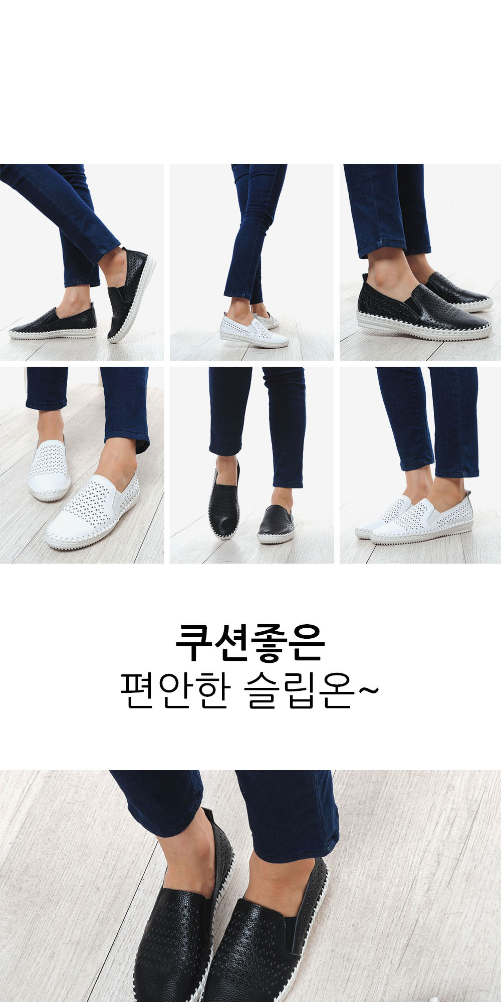 • 가죽 삼각펀칭 여름 밴딩 단화 슬립온
