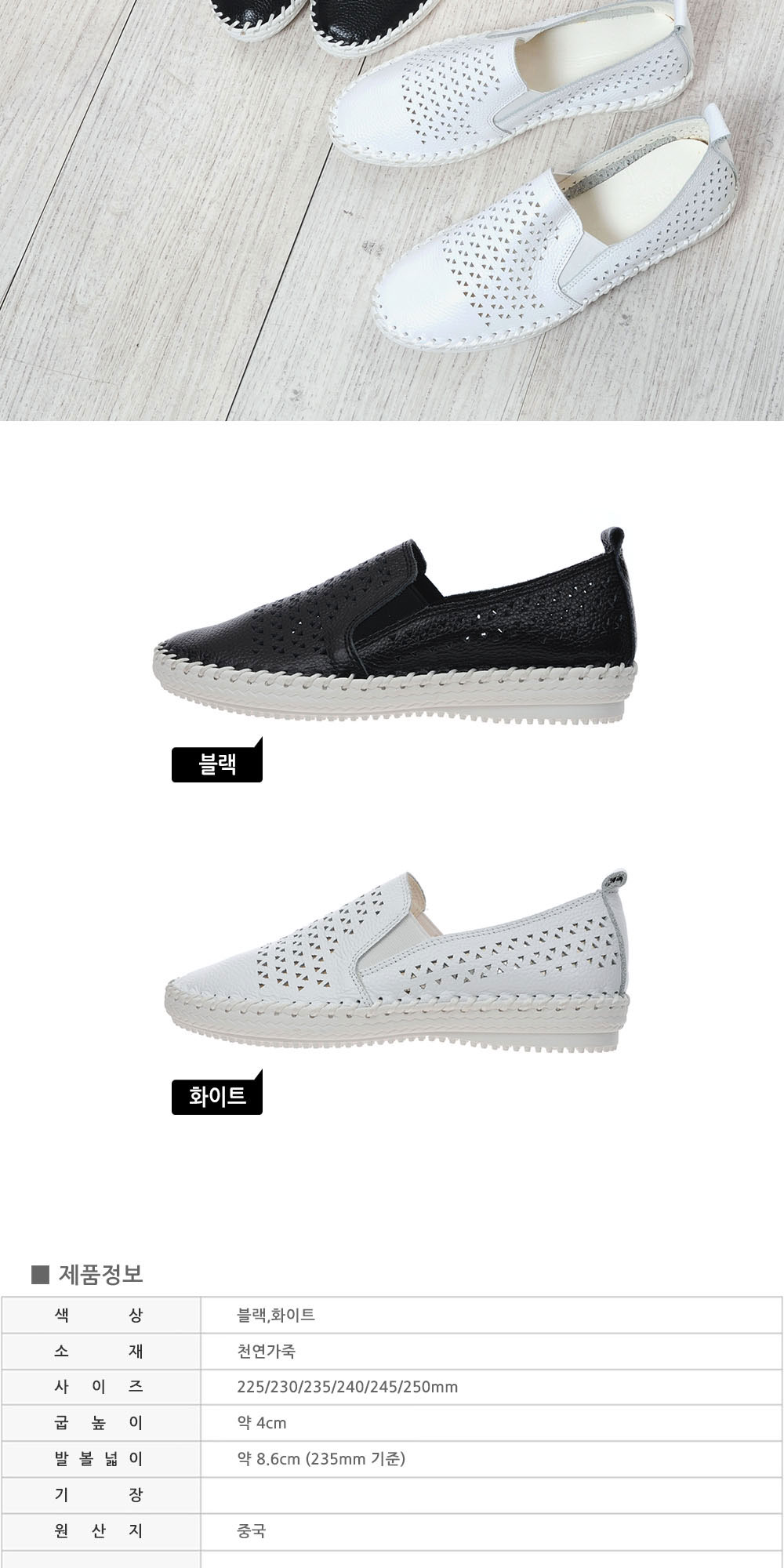가죽 삼각펀칭 여름 밴딩 단화 슬립온