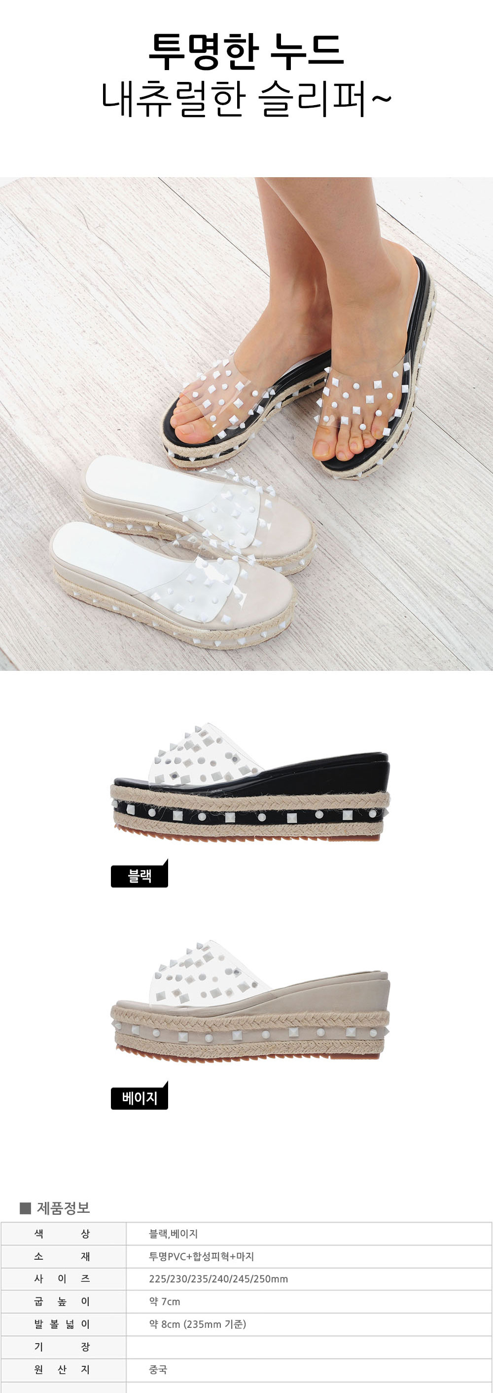 • 스터드장식 여름 키높이 웨지 슬리퍼