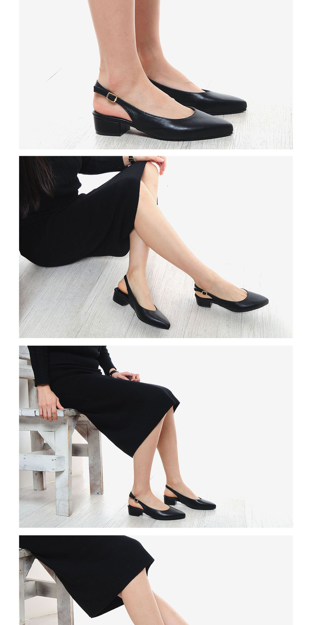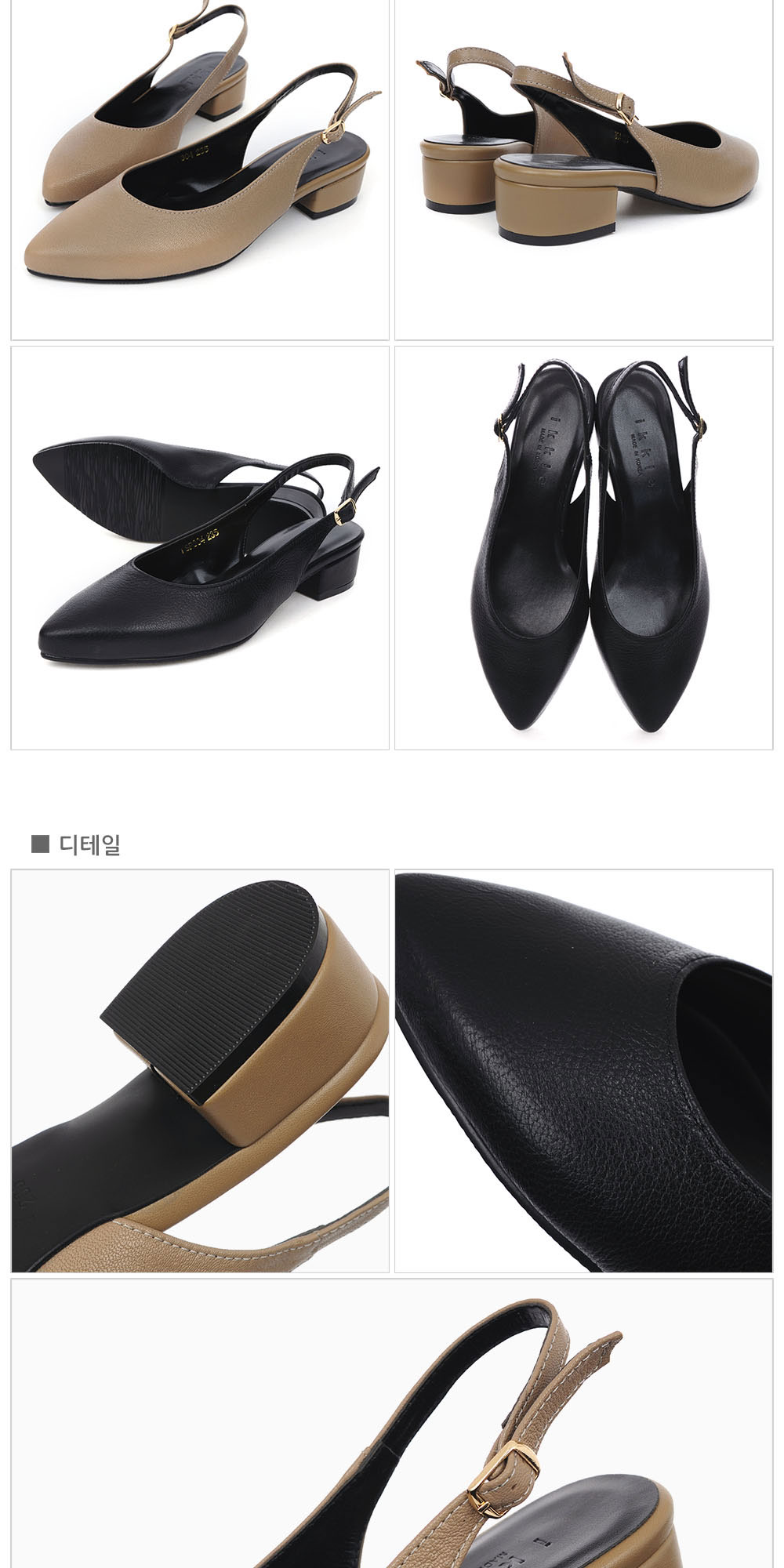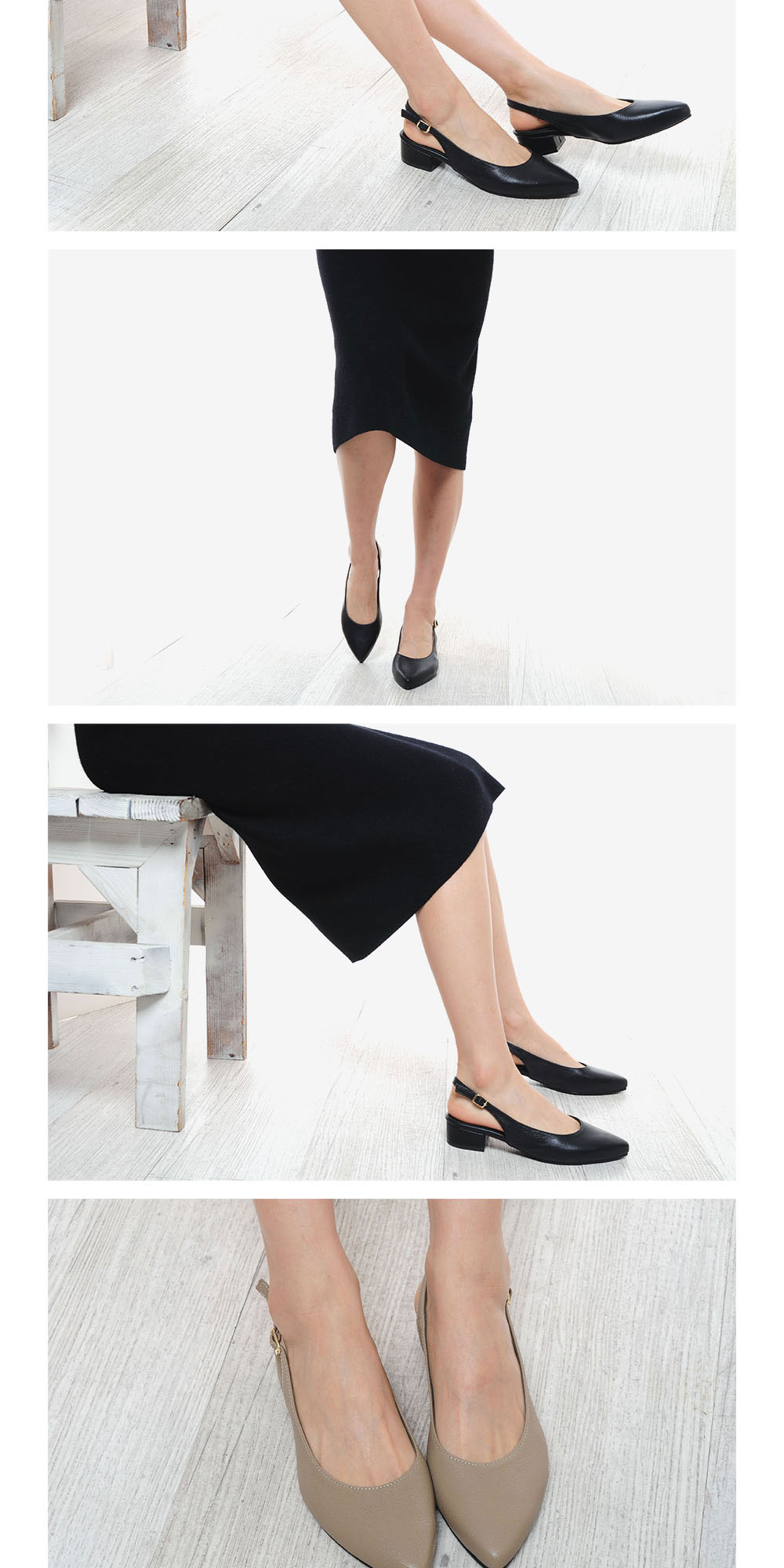 • 가죽 심플 뾰족코 미들힐 슬링백구두