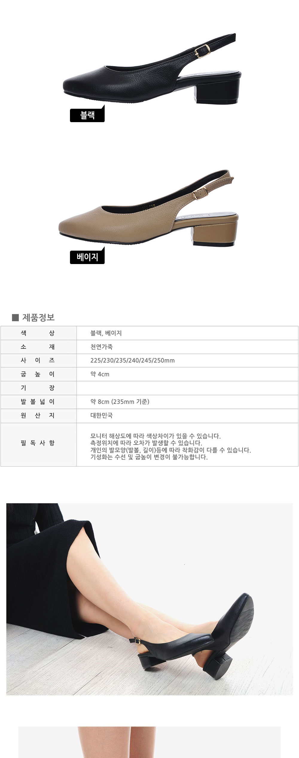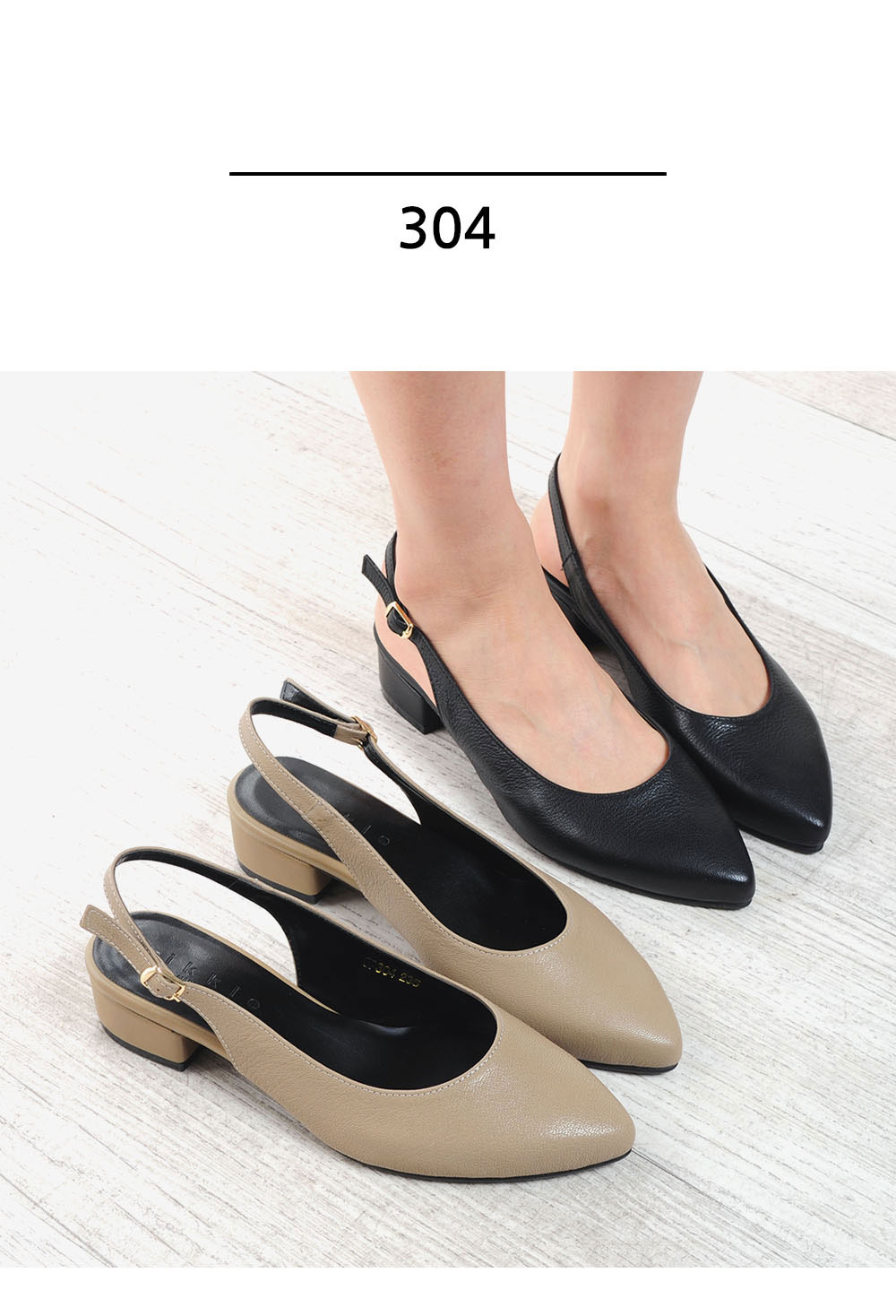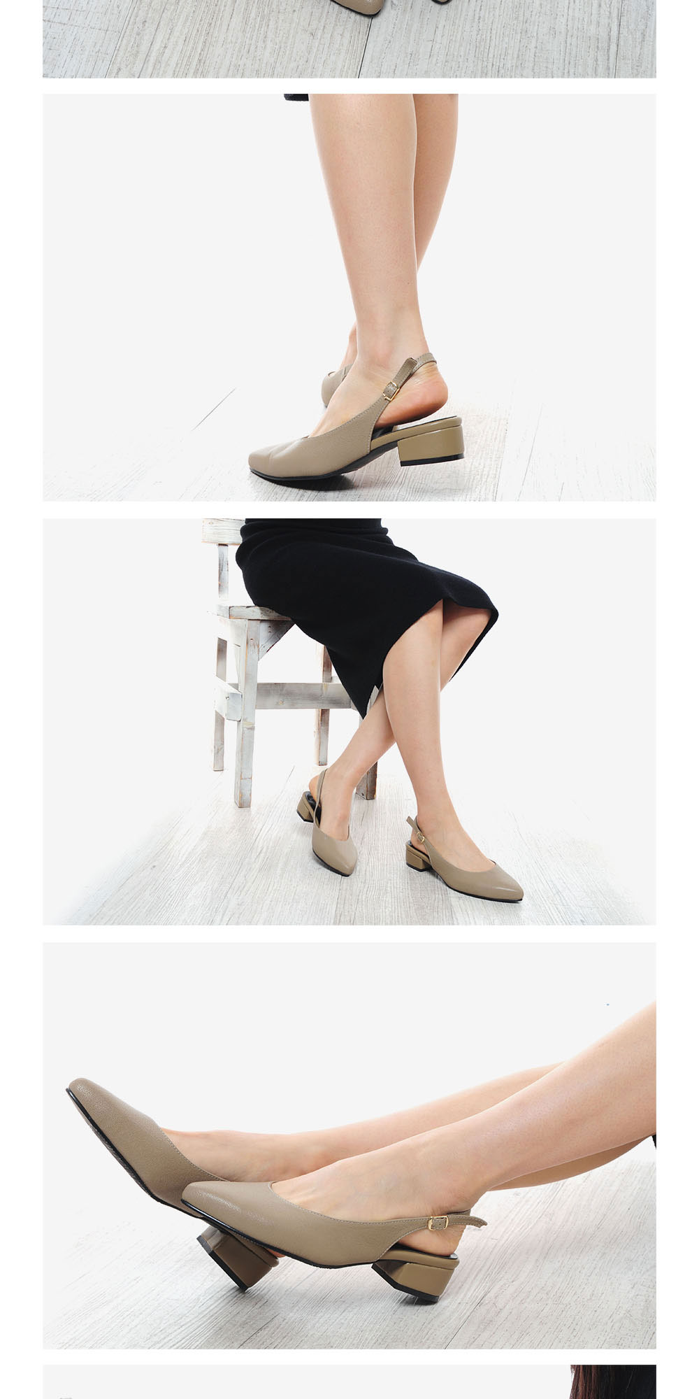 • 가죽 심플 뾰족코 미들힐 슬링백구두