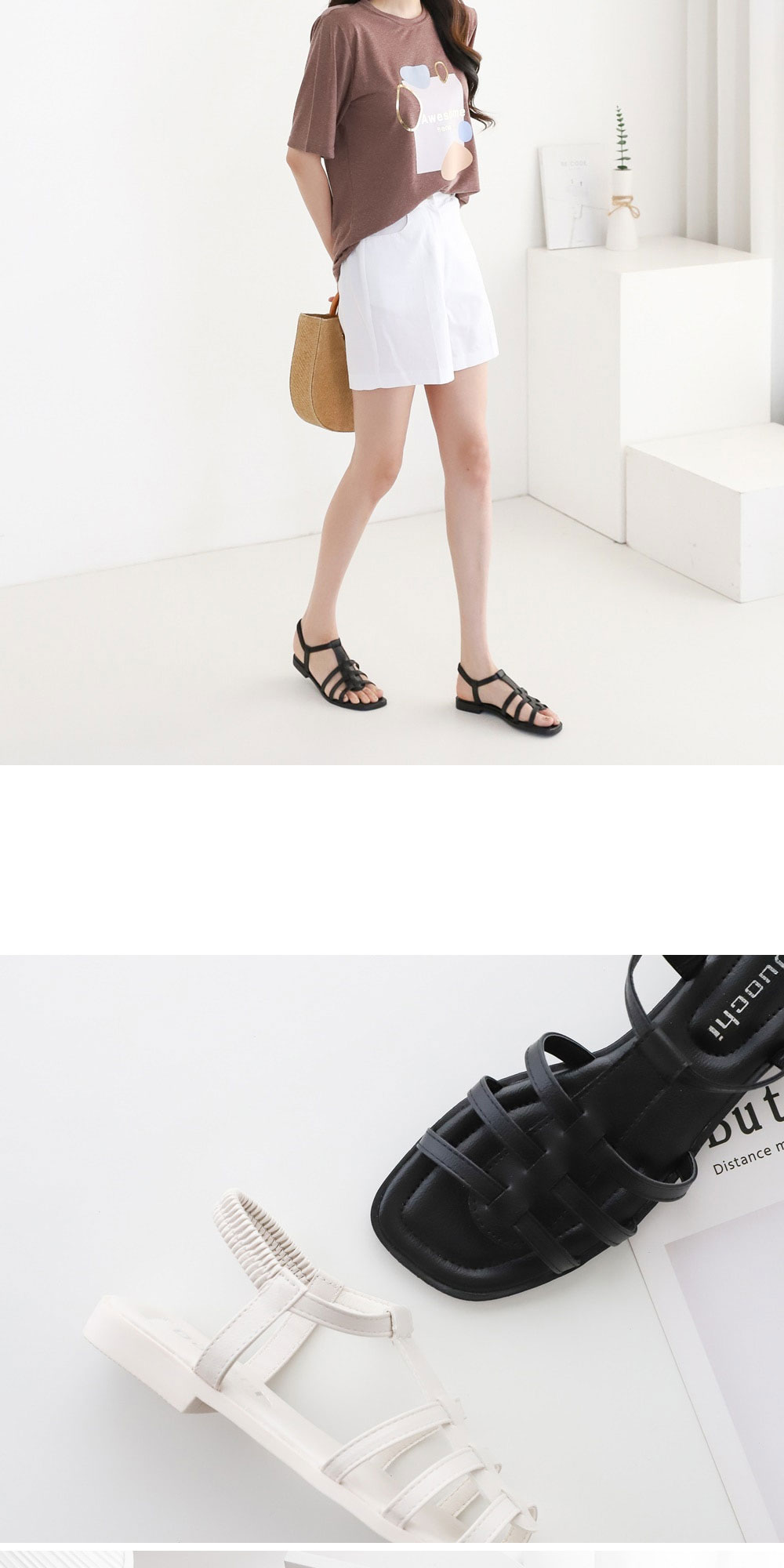 • 슬림 글래디에이터 스트랩 밴딩 샌들