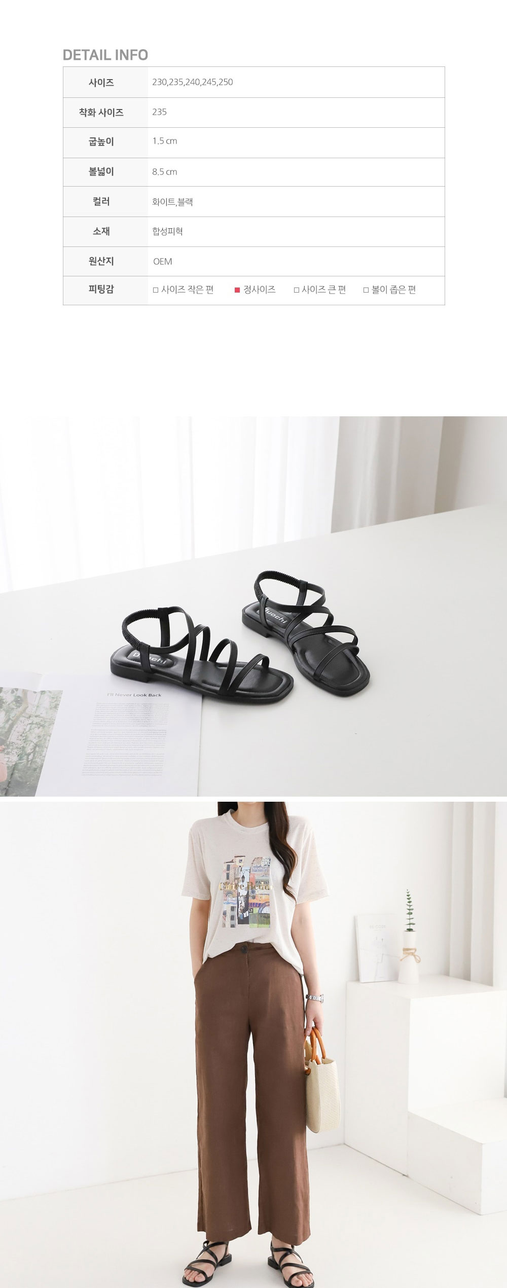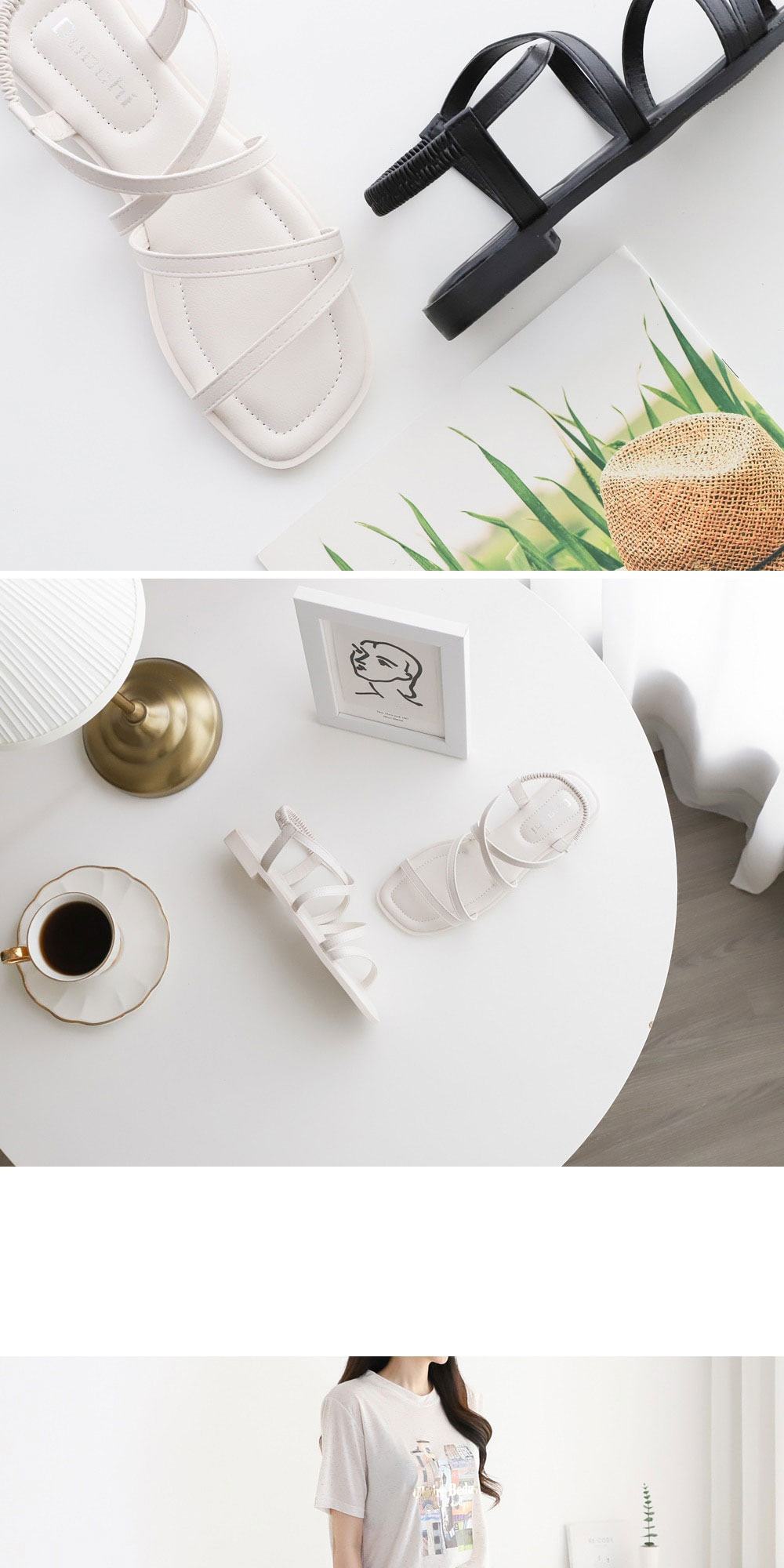• 사선 크로스 씬 스트랩 플랫 샌들